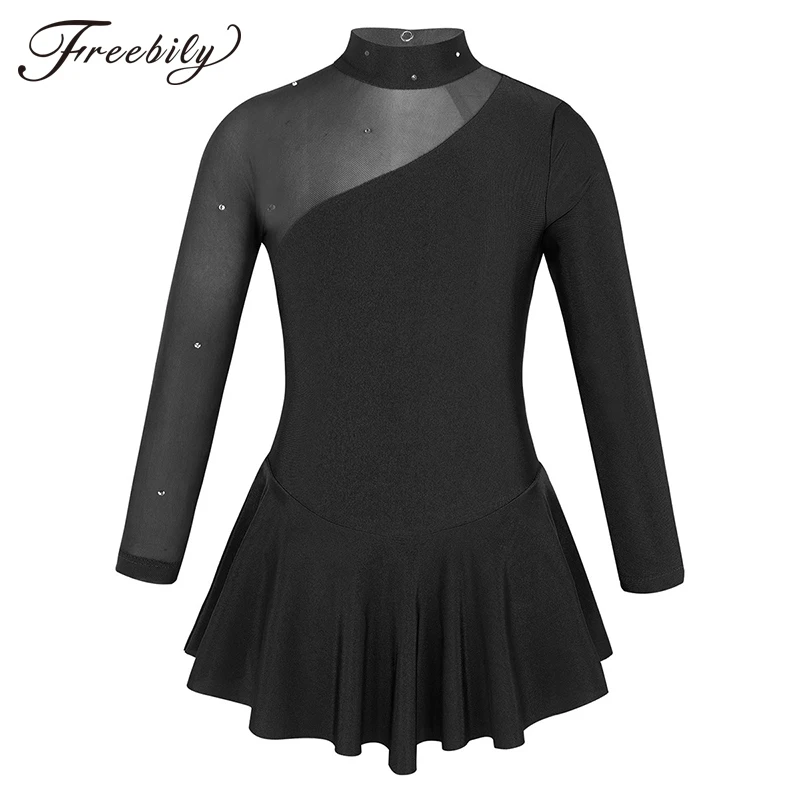 Детские тюлевые Стразы с длинными рукавами для девочек, платье для фигурного катания, Бальное детское гимнастическое трико, балерина костюм для танцев
