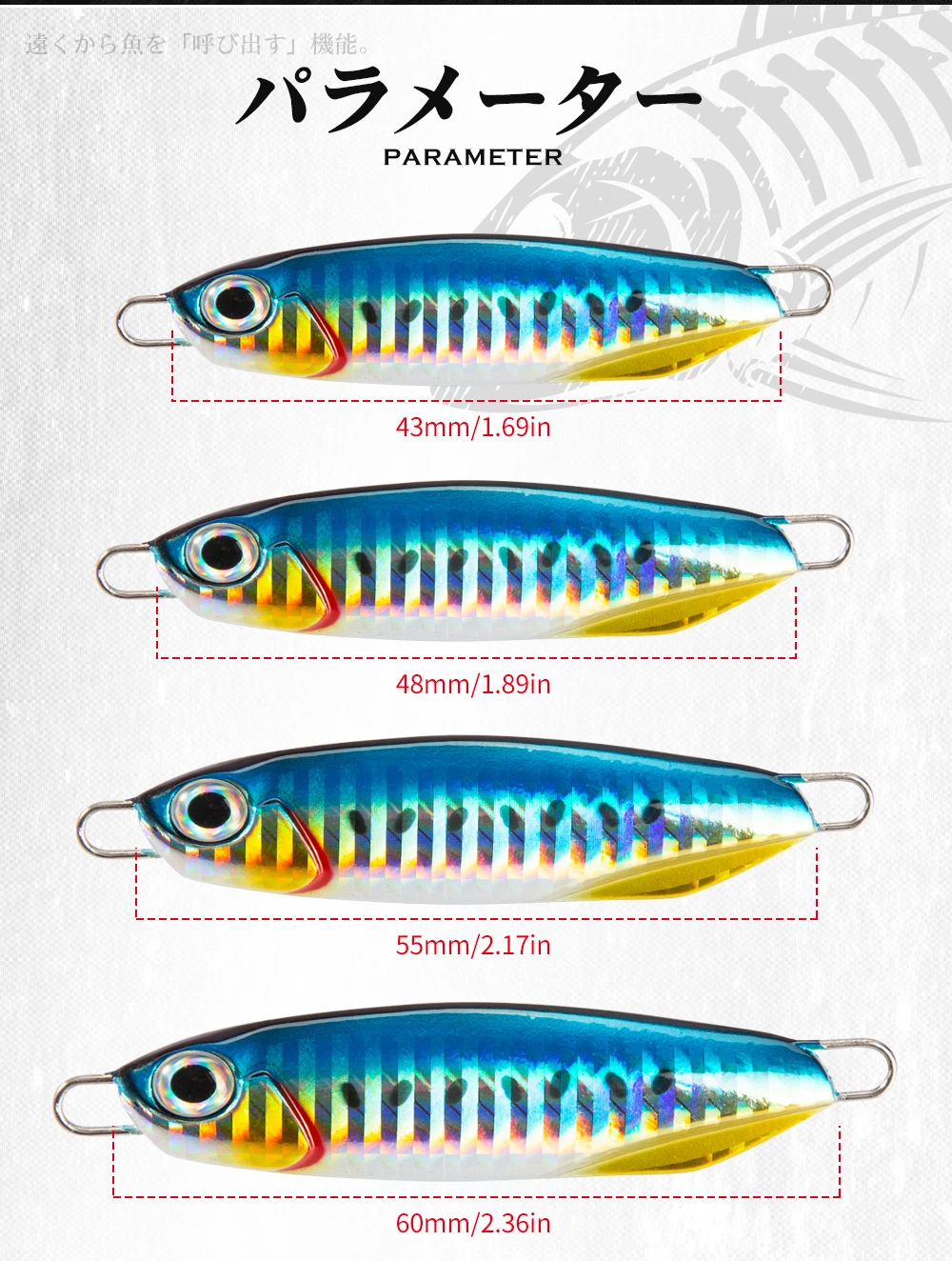 Тащите металлические мухи, как ракету и эффективно погружайтесь в глубину. Рыболовы могут подергивать его или даже просто вставлять, и он будет выполнять очень привлекательные действия. Компактное, но толстое тело позволяет рыболовам достигать выдающегося расстояния литья. Кроме того, его стабильная способность к плаванию и горизонтальное скользящее действие во время осени будут мешать рыбе через простую намотку приманки или сочетание дергающей и дергающей. Более привлекательный цвет и форма тела были предоставлены этой конкретной приманки.
