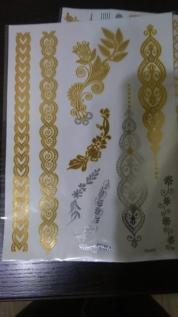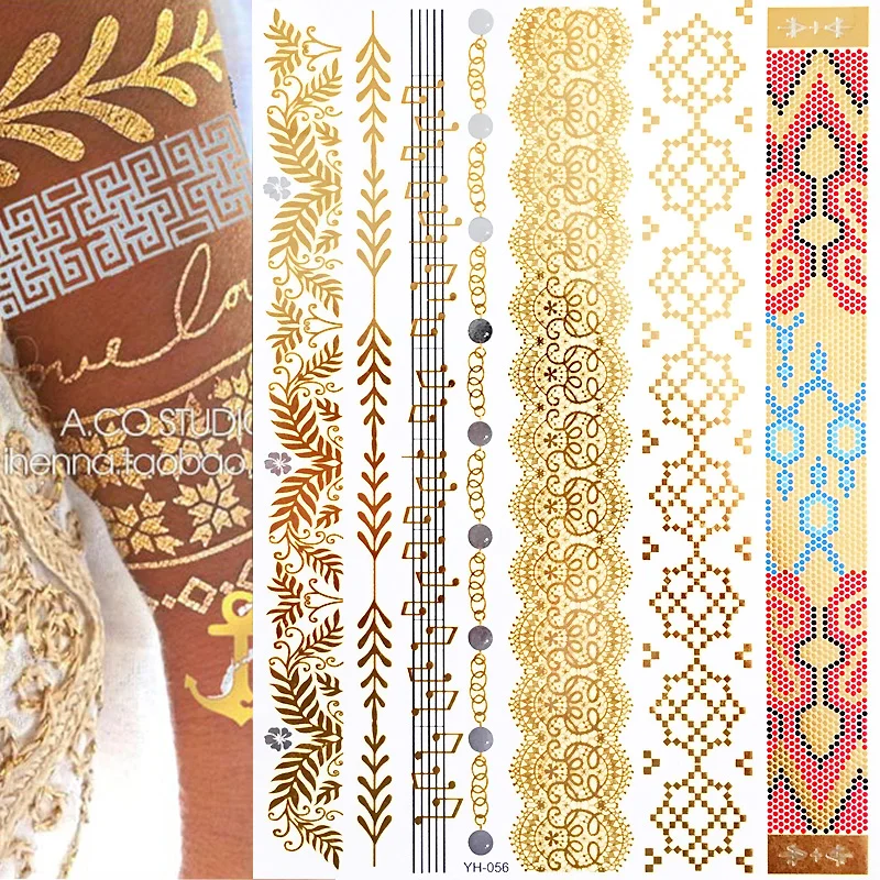 Временные татуировки, водостойкие, нетоксичные, 175 + дизайнов, 1 большой лист, металлические татуировки из хны золотого и серебряного, золотого цветов