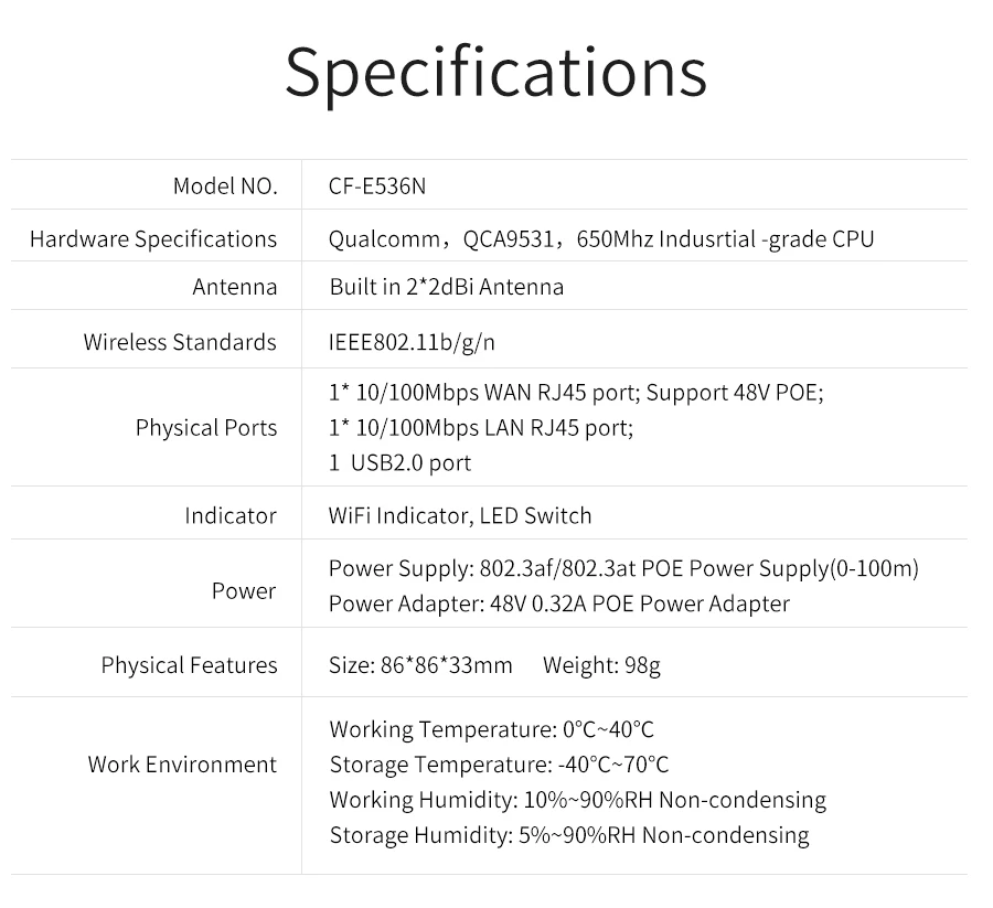 Comfast 300 Мбитс 16M Flash Drive 64 м DDR 48V POE RJ45 + RJ11 86 П...
