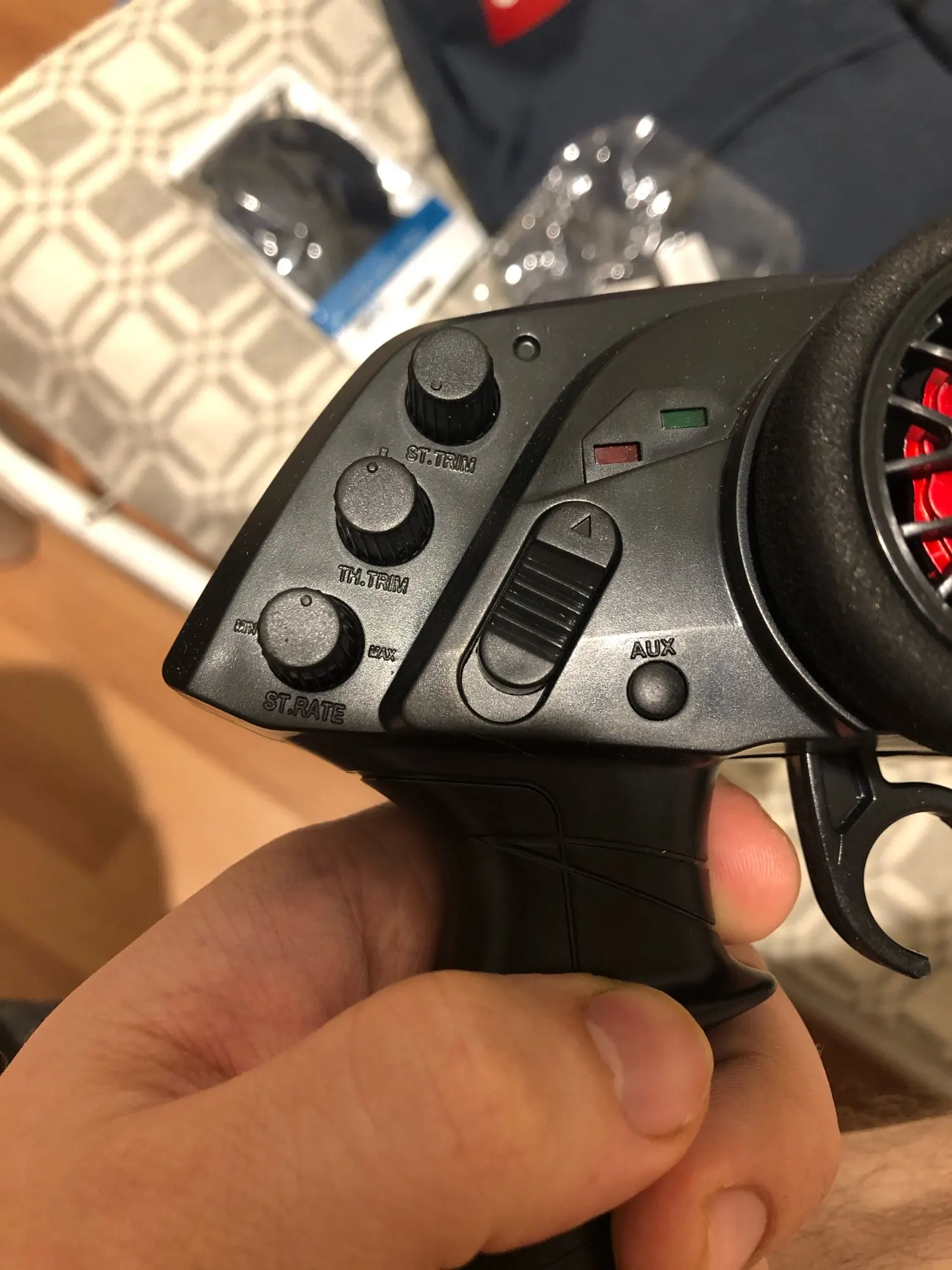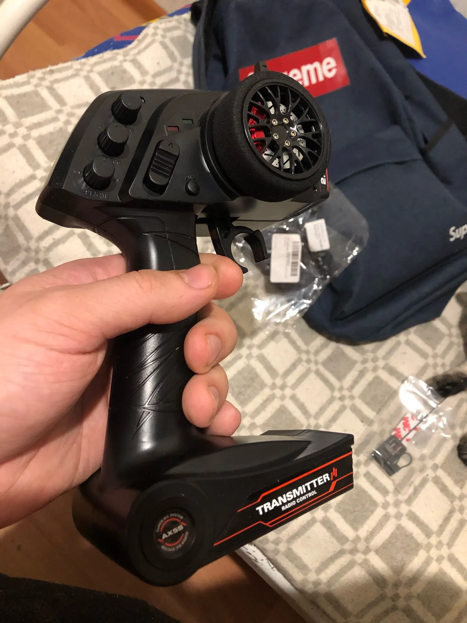 Коробка мята,распаковал,на smax подошло движок до этого покупал бесколлекторный,а оказалось надо пульт отдельно с приёмником брать.вот пришёл пульт и все таки родной смах лучше, тут колесо не делается на другую сторону, придётся привыкать к этому.регулировки вроде удобные,4 АА батареи. До скольки метров ловит не знаю но скорость такая что машину переворачивает на месте старта.
