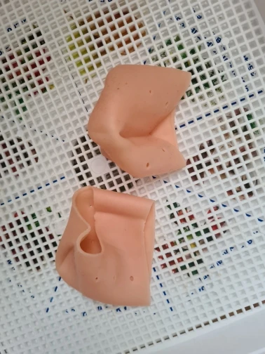 я в восторге ! Нежный силикон. Пилингую пяточки, смазываю кремом и надеваю эти полуносочки перед сном. Ничто не мешает , не марает постель