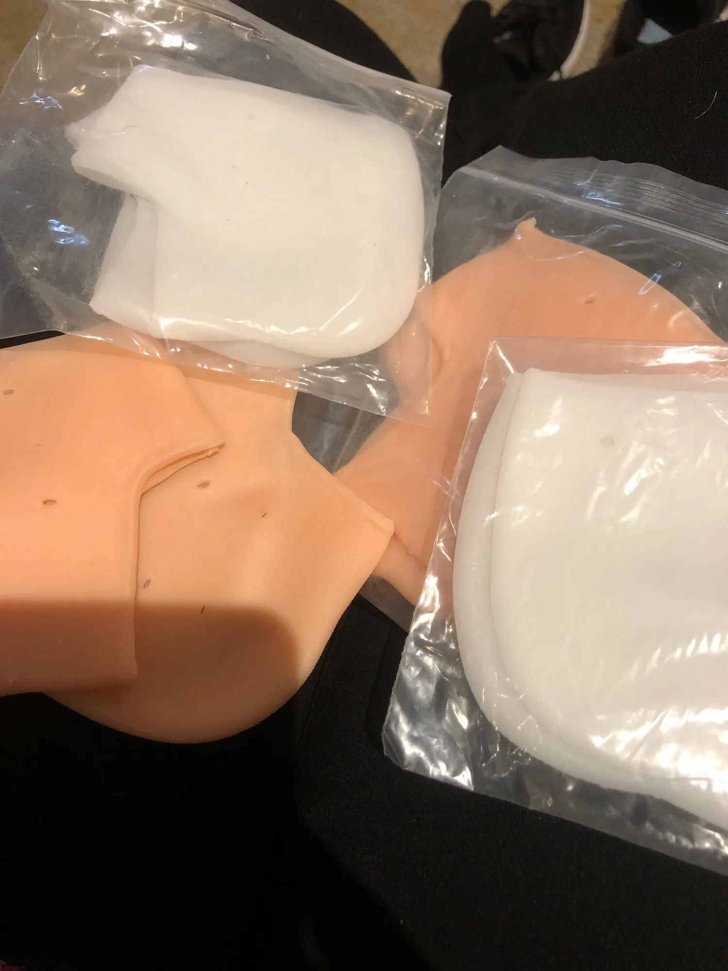 Товар пришел спустя 1,5 или 2 месяца. Покупала, чтобы разносить Мартинсы И НЕ ПОЖАЛЕЛА. Сами штуки силиконовые и очень мягкие. НАДЕВАТЬ их лучше на пятку, а потом уже носки/колготки тк они будут сползать когда ногу будете просовывать в ботинок. Пятка потеет если что, но не сильно так что не переживайте. По ощущениям как будто вы наступаете пяткой на слайм, но это никакого дискомфорта не приносит. Касательно натирается ли? НЕТ они полностью защищают вашу пятку от злощастных мартинсов так что ваши пятки в мясо не превратятся. Особо только не растягивайте эти штуки. ПРЕДУПРЕЖДАЮ на них все липнет тк это силикон так что мойте почаще их. Товаром довольна лучшая покупка за сотку