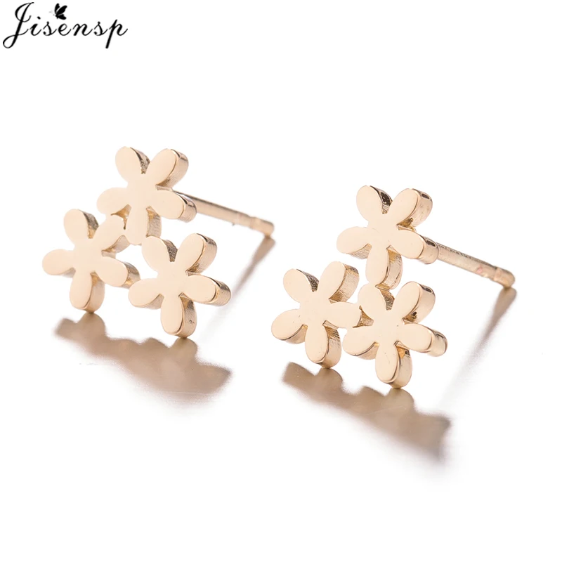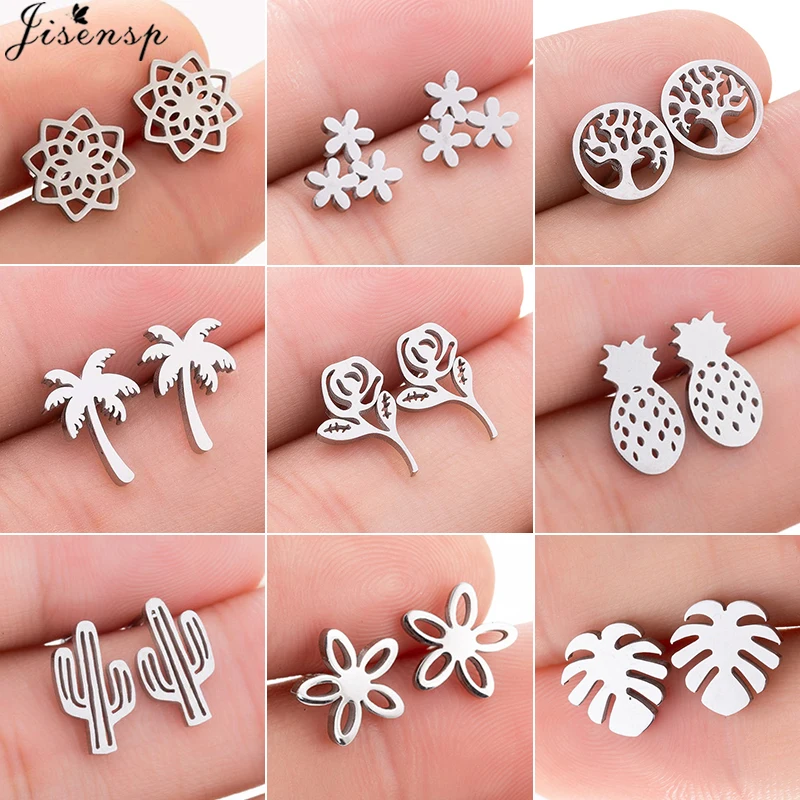 Женские Геометрические серьги Jisensp, маленькие серьги из нержавеющей стали, серьги-гвоздики в форме растения