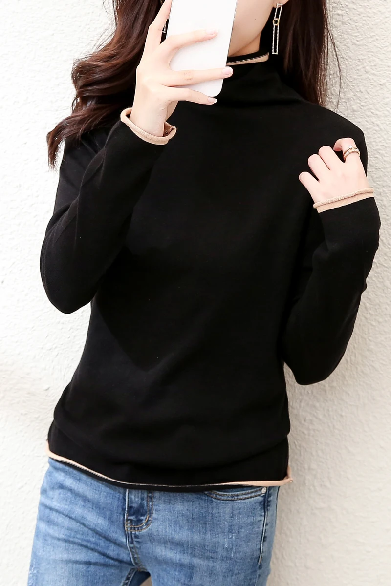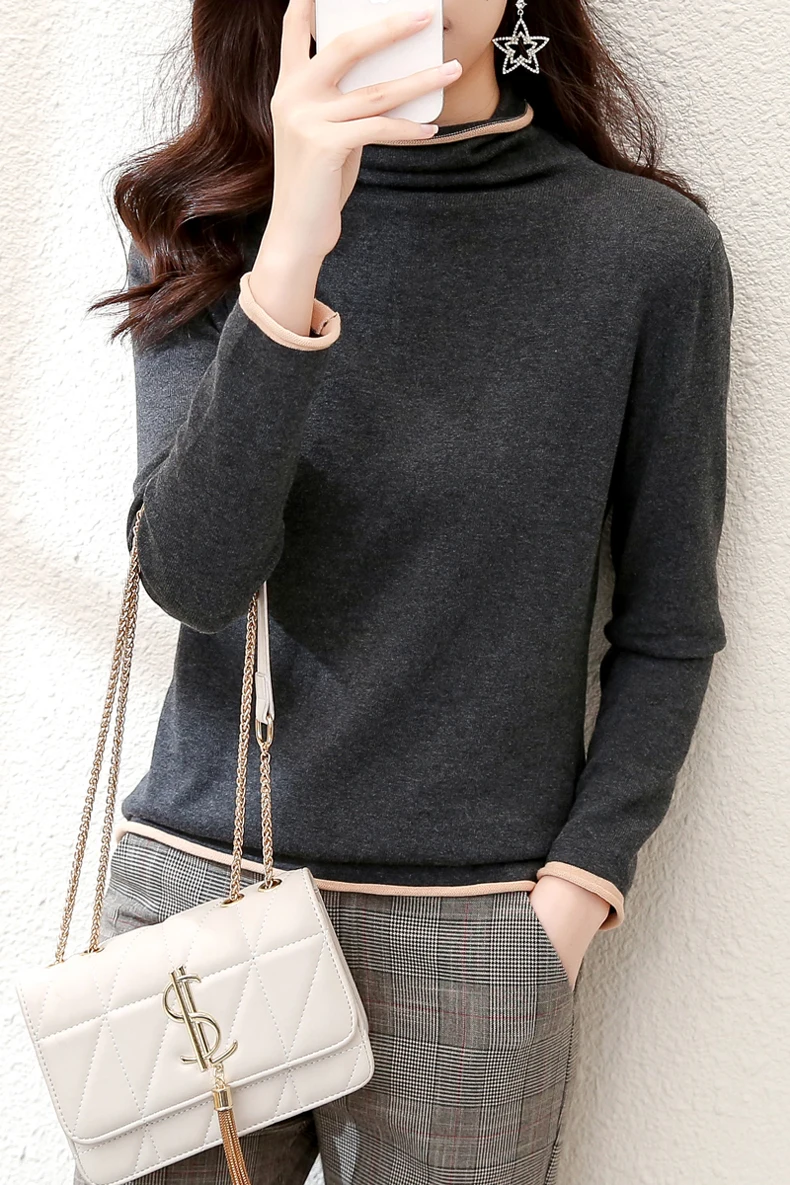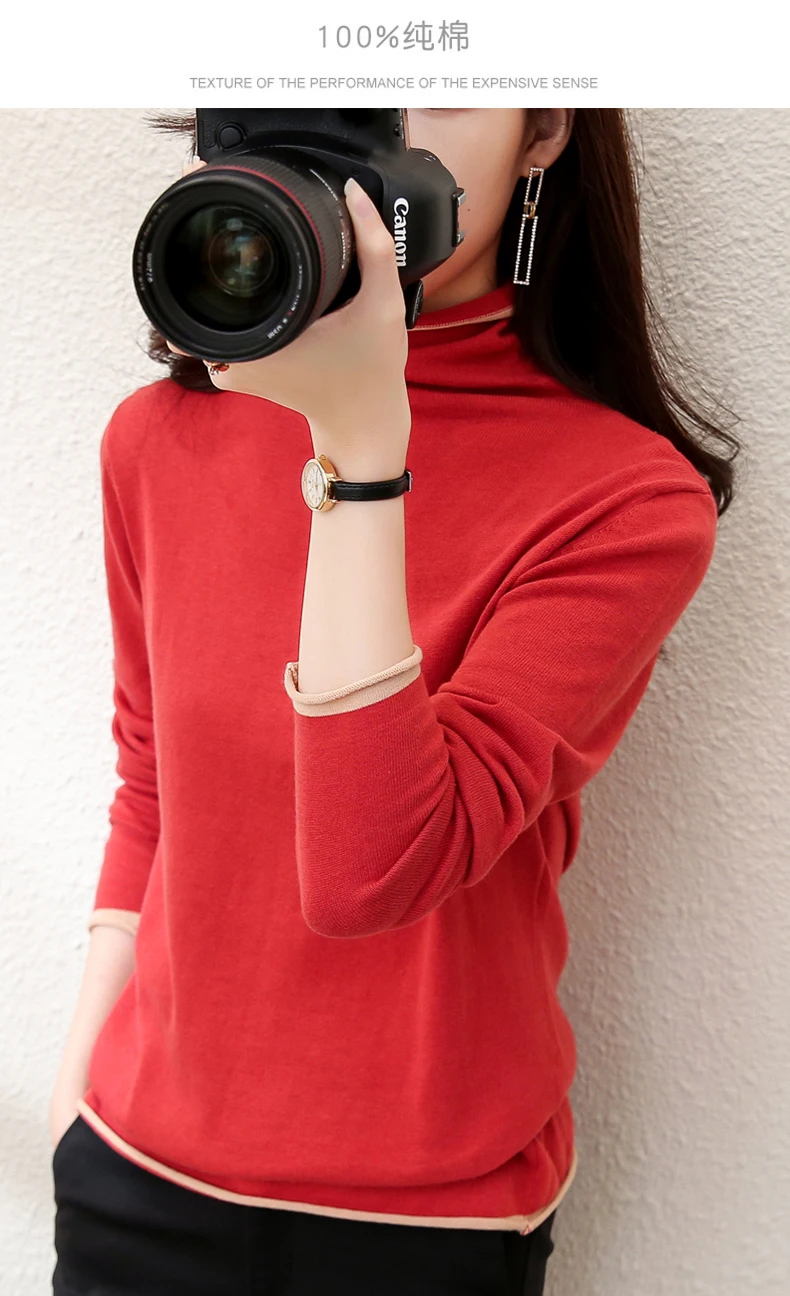 Smpevrg 100% хлопковый вязаный свитер, женские пуловеры, водолазка с длинным рукавом, тонкая свободная одежда, женский свитер, джемпер, вязаные топы, мягкие