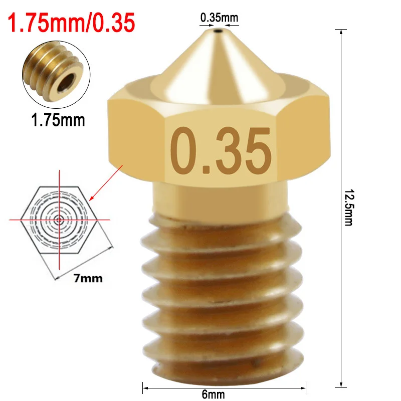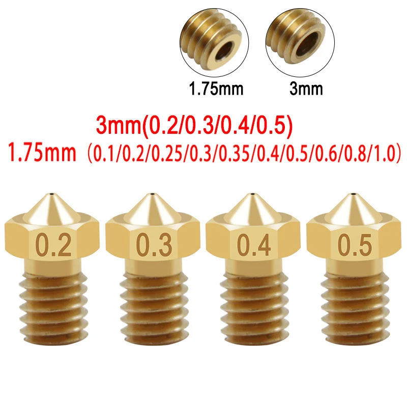 10 шт. Латунное сопло 3D-принтер аксессуары M6 резьба Печатающая насадка E3DV5V6 для 1,75 расходных материалов 0,1-1,0 мм 3 расходных материалов