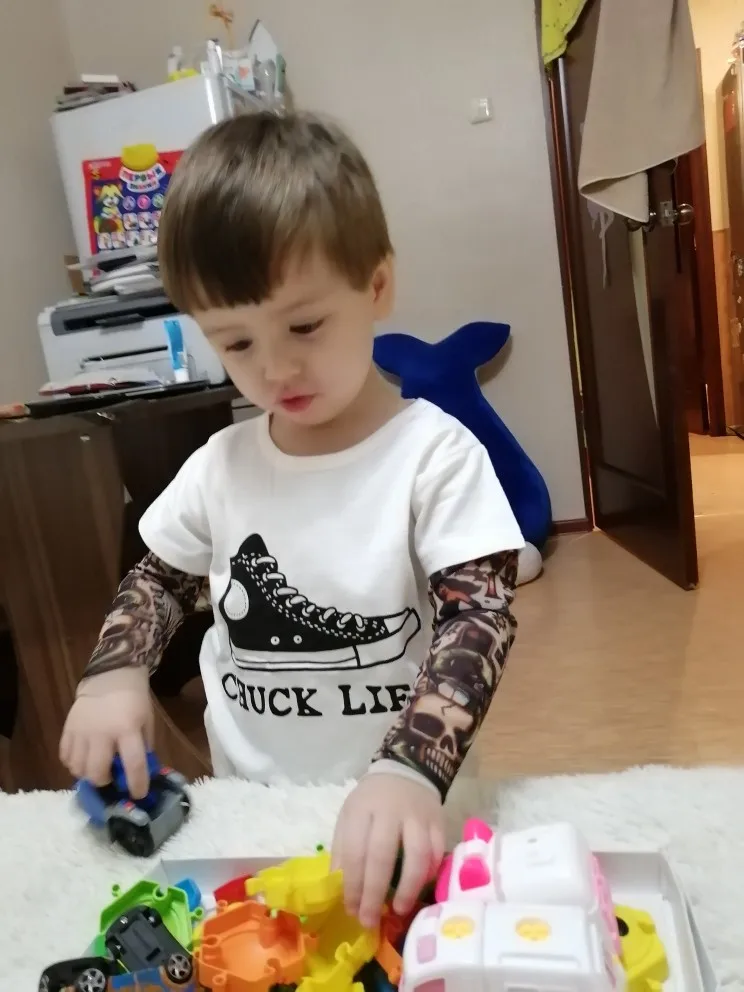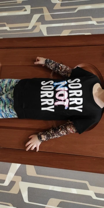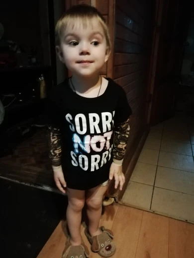 Ребёнку 2.6 г. 16 кг 95-96 см. 4 т в притык. Надо было брать 5 т. Поэтому советую брать на 2 размера больше. Маломерит все таки. Думаю и после стирки подсядет. Ну а так прикольная футболка. Ворот большеват зато. Поносим пол года и думаю все