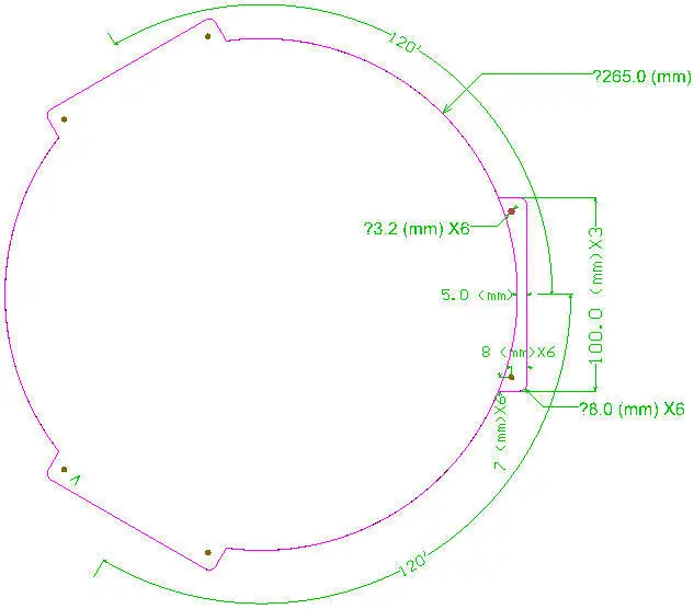 О:Размер горячей кровати 265 мм, 12 в 1 Ом резистор; 24 В сопротивление 4 Ом мощность около 120 Вт; с ушами.