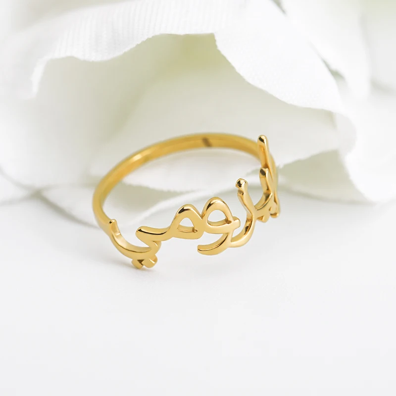 Персонализированное кольцо с арабским именем Bijoux из нержавеющей стали ислам обычай имя кольцо арабское ювелирное изделие аксессуары именные кольца для женщин и мужчин