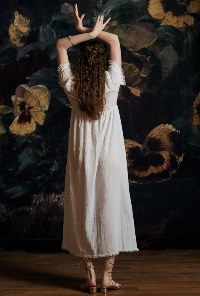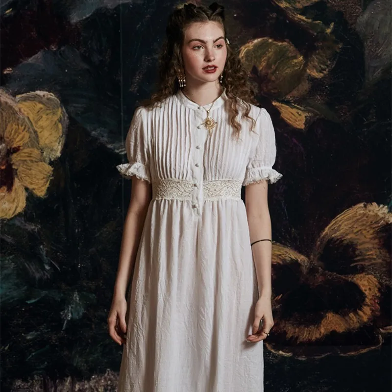 Летнее платье, ночная рубашка, элегантное романтическое ночное белье, белое платье с коротким рукавом, женская летняя ночная рубашка принцессы, повседневная юбка