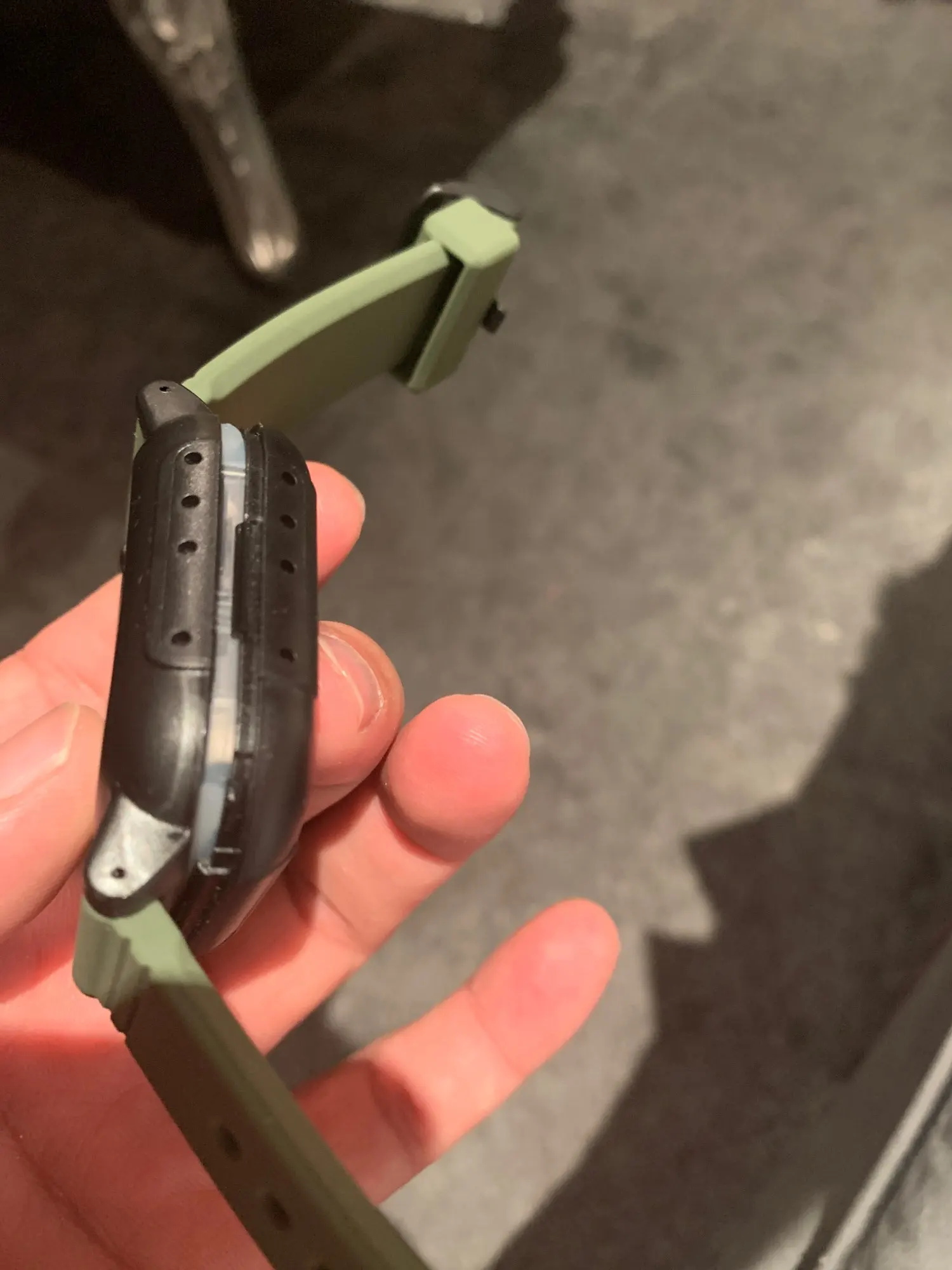 Во-первых, нигде не указано, что цвет «grey green» люминесцентный. Если, конечно, это не ошибка и доставили просто другой цвет. На изображении товара непрозрачный ремень светлого мятного цвета. По факту полупрозрачный ремень. Светится в темноте. Кому-то может и понравится, но мне было не нужно. Очень трудно открыть сам корпус, особенно если уже защёлкнулся на часах, приходится цеплять чем-то острым, деформируя пластик. И самое главное, что как только корпус защелкнулся на часах, не работает кнопка колеса, и становится невозможным использование часов! Открыла спор, т.к. изделие полностью непригодно.