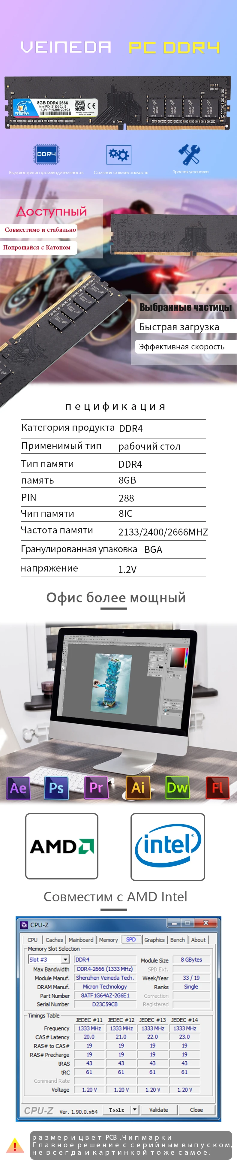 8 ГБ 4 ГБ DDR4 2133 МГц/2400 МГцПрименение: Рабочий столТип: DDR4Номер модели: DDR4 4G 8GB 2133/2400/2666MHZЧастота: 2133/2400/2666 МГцФункция: NON-ECCПосылка: ДаКомбинированная форма: ОдинарнаяЧастота памяти: 2400 МГц/2133HMZТип интерфейса: 288pin, память настольного компьютераНапряжение памяти: 1,2 вОригинальные чипы, для SK hynix SEC ELP MIC...Размер печатной платы, цвет и Марка чипа памяти зависят от заводской партии, не всегда одинаково!Примечание: 8 Гб 2133/2400/2666 могут работать на материнской плате x99, но 8 Гб 3200 МГц не могут работать на материнской плате x99.