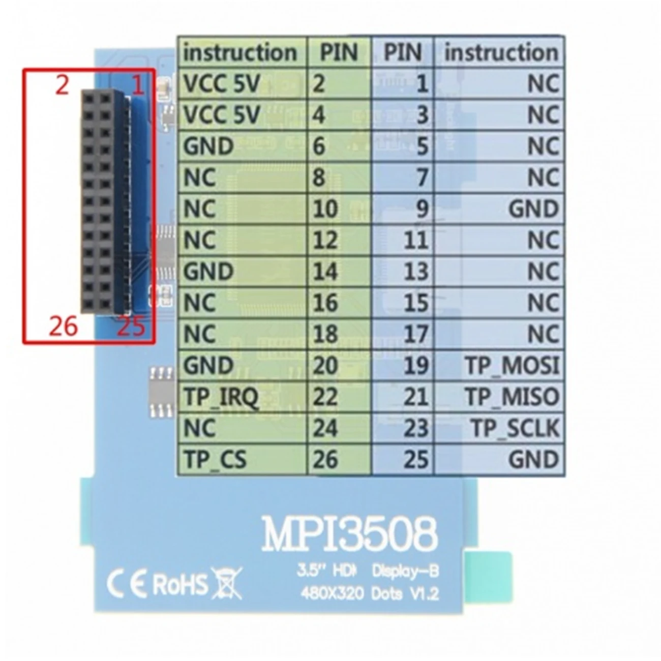 ⑤Raspberry Pi 26PIN гнездо: при использовании в качестве Raspberry Pi дисплея, получить питание и вернуться касание здесь