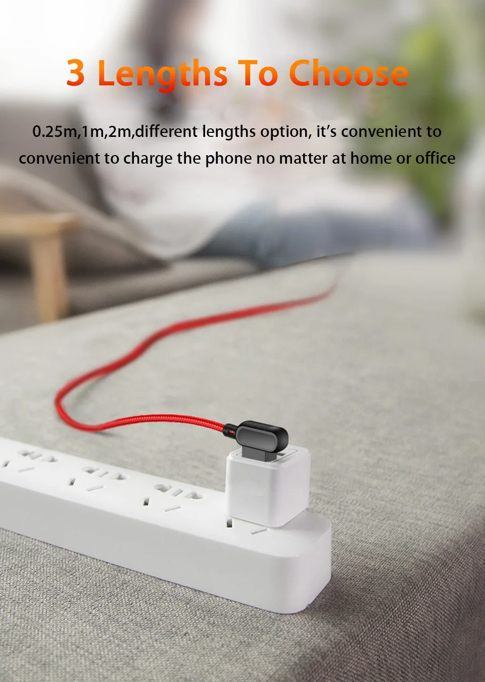Другой конец-разъем usb2.0 на 90 °, быстрая передача данных до 480 Мбит/с . Когда он вставляется в зарядное устройство usb, которое находится на рабочем столе, кабель небрежно доходит до вашей передней части. Не нравится прямой дизайн, его нужно сгибать каждый раз, и крышка кабеля будет сломана в течение некоторого дня. Прямоугольный дизайн более прочный.