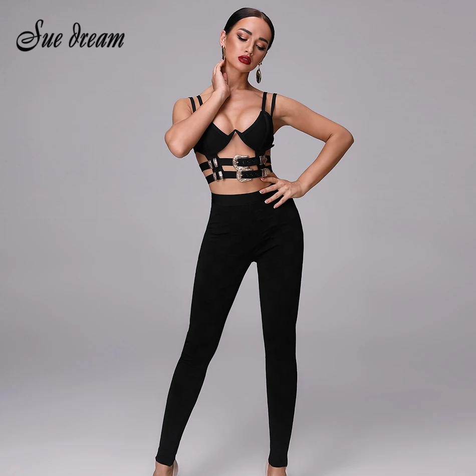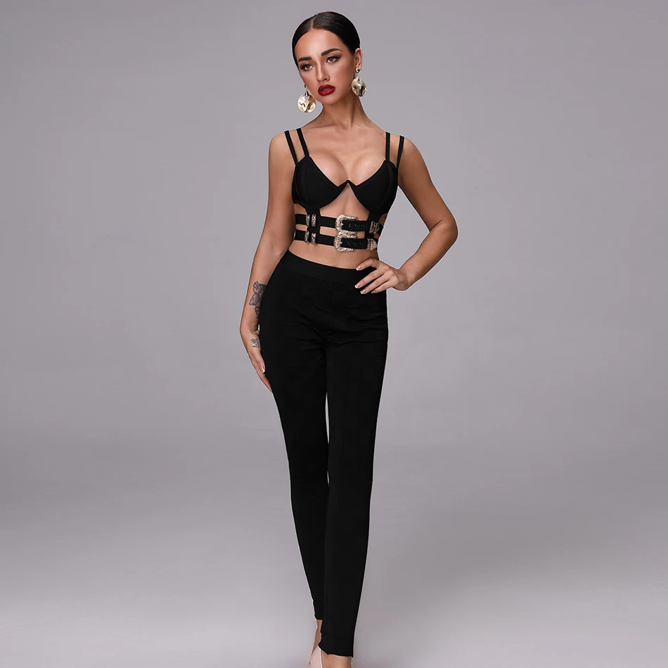 2021 новые женские повязки, брюки-карандаш, Модные женские сексуальные обтягивающие Летние черные брюки из 2 предметов, женская оптовая продажа