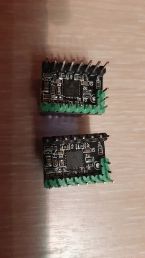 Доставка быстрая. Упаковка хорошая. Работают в Flyingbear ghost 5. Для возможности установки выпаял из платы драйвера 2 лишних пина, контактирующих при установке с конденсаторами на материнской плате. Обычно эти пины не впаивают на платы драйверов, на этих платах драйверов они присутствовали.
