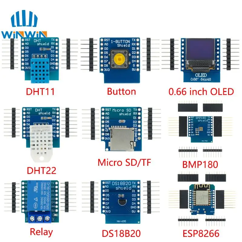 Макетная плата ESP8266 D1 Mini Pro, с Wi-Fi, NodeMcu WS2812 RGB DHT11 DHT22 AM2302 реле DS18B20 BMP180, мотор для WeMos, сделай сам
