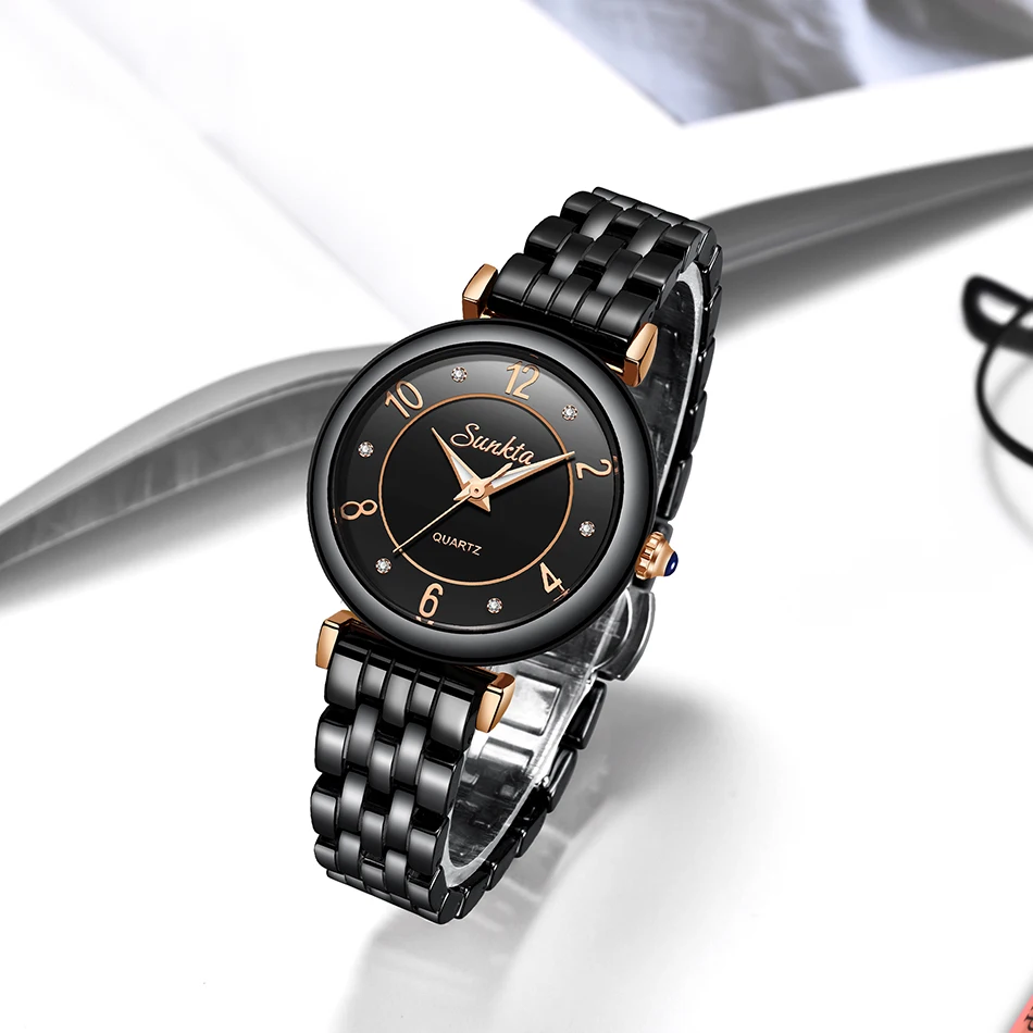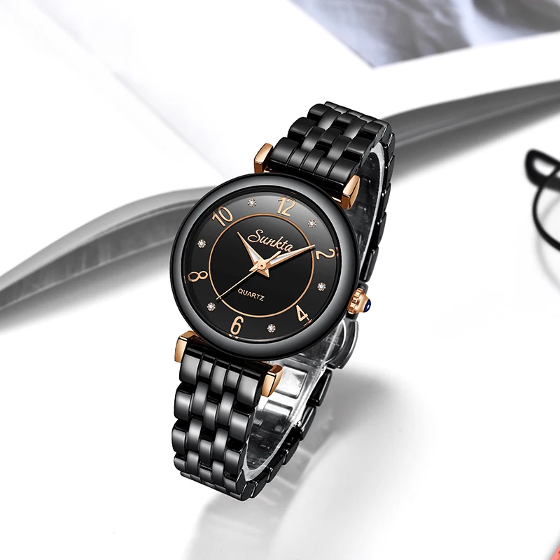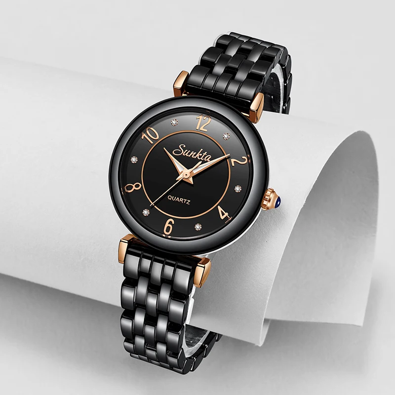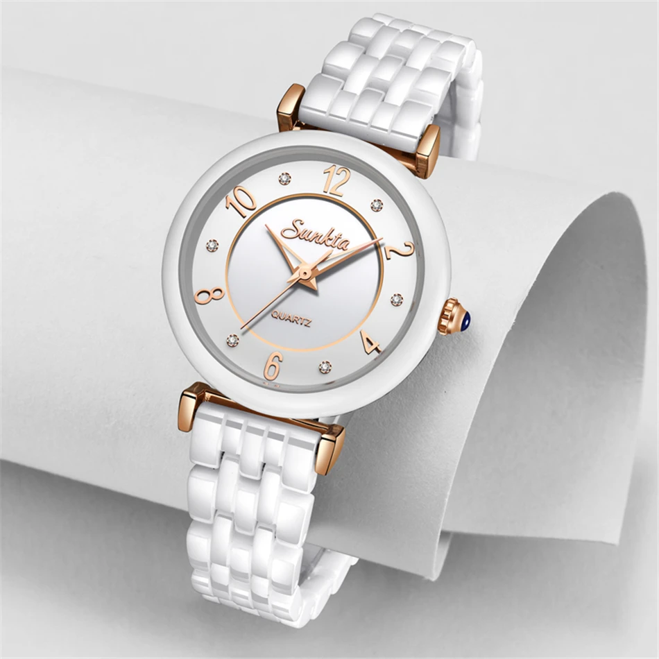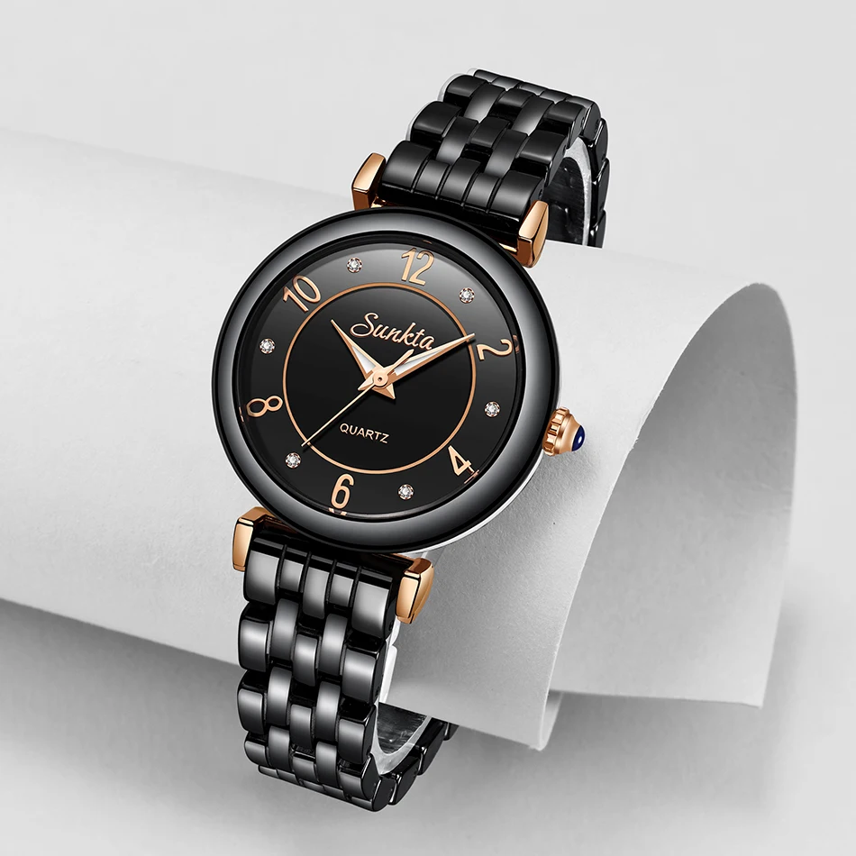 Часы наручные SUNKTA женские керамические, водонепроницаемые повседневные Модные ультратонкие спортивные с коробкой