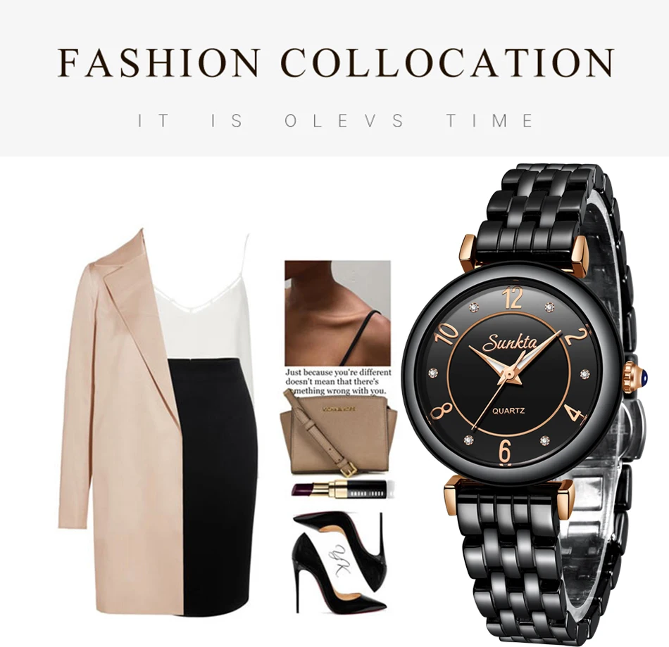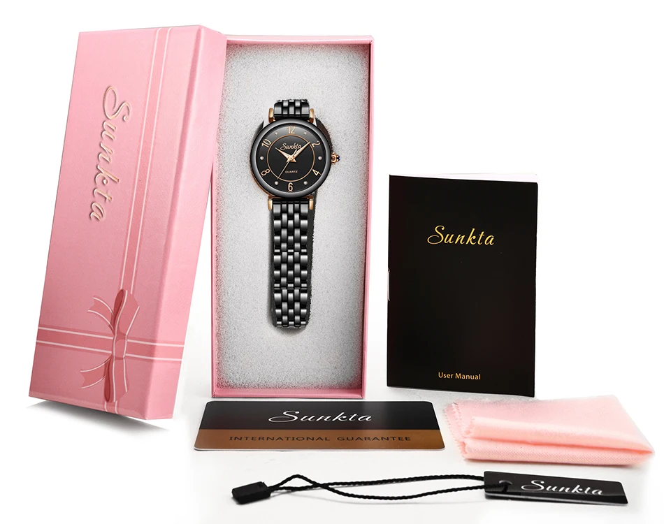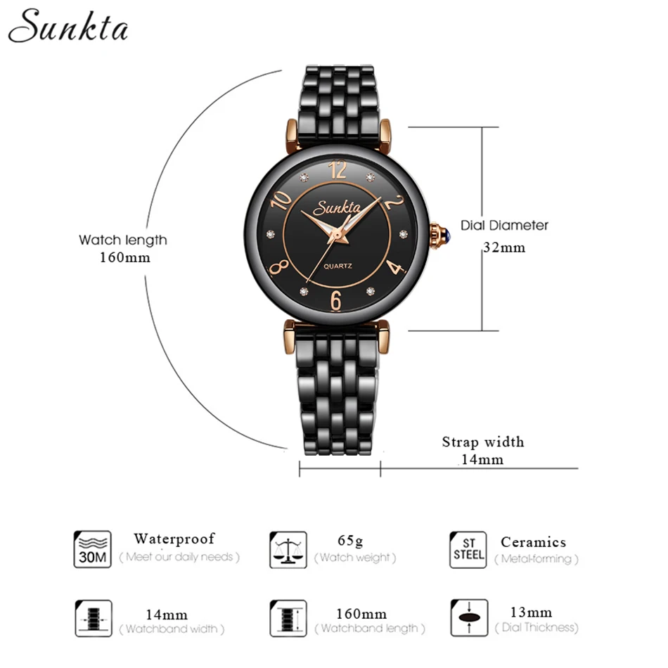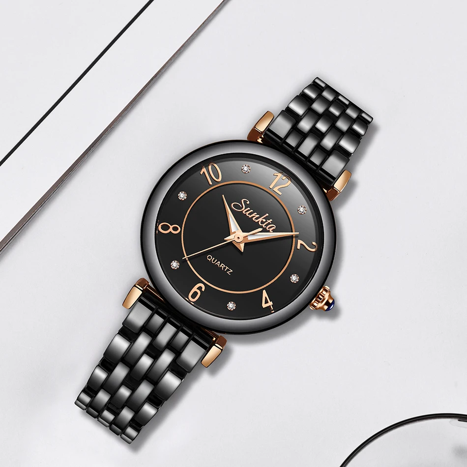 Часы наручные SUNKTA женские керамические, водонепроницаемые повседневные Модные ультратонкие спортивные с коробкой