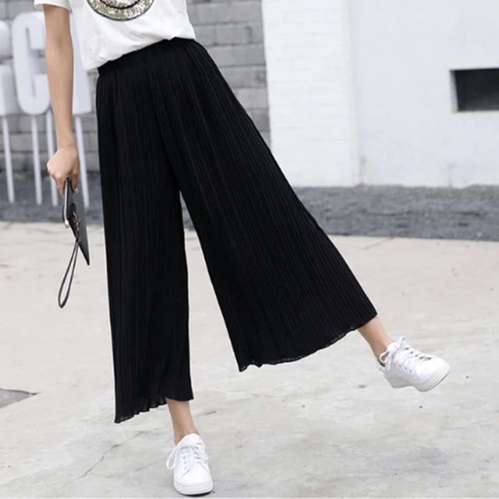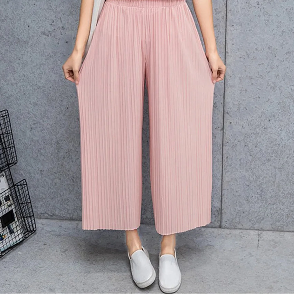 Брюки женские с широкими штанинами, льняные Длинные свободные однотонные повседневные Тонкие штаны до щиколотки, с завышенной талией, эластичные, 9 цветов, на лето