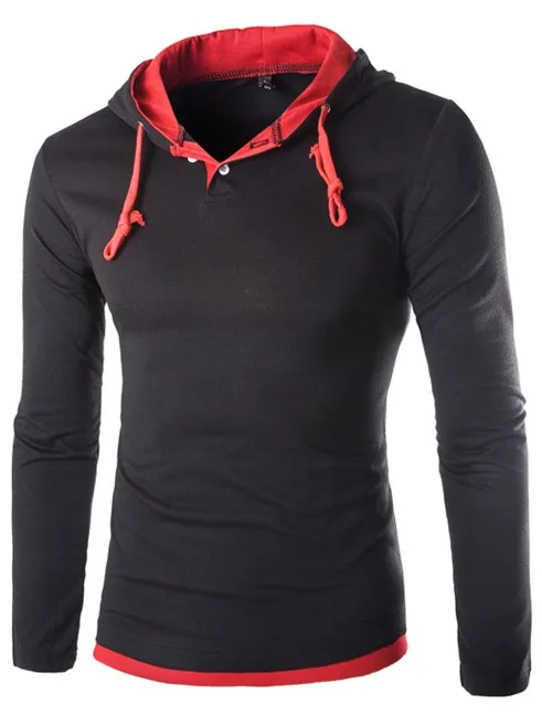 Мужская приталенная футболка с длинным рукавом, с капюшоном