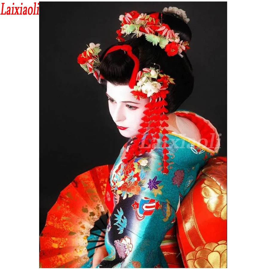 Алмазная вышивка красивая девушка, полная выкладка, 3D картина из страз сделай сам, японская одежда, женщина, вышивка крестиком, мозаика, картина на стену