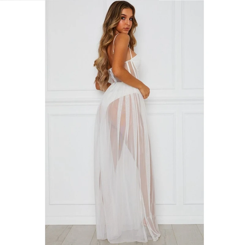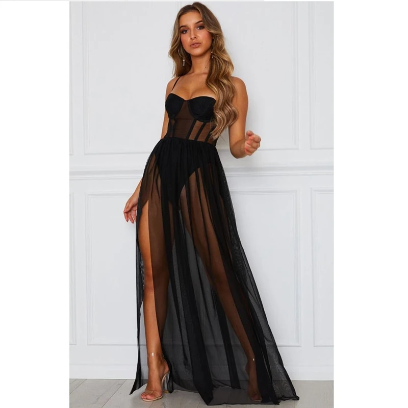Летний женский сетчатый Марлевое длинное платье, сексуальный комбинезон на бретелях, цельнокроеный прозрачный пляжный сарафан без рукавов с открытой спиной