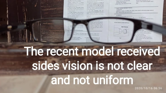 Линзы по бокам не обеспечивают четкость и равномерность. Линзы не имеют питания на окружающих сторонах, только центр ясен. Очень похожая старая модель была получена идеально, зрение было очищено по всей стороне линз.