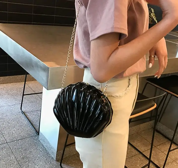 Новая модная сумка-ракушка, цепочка на плечо, однотонные сумки, женские маленькие сумки-Кроссбоди из ПВХ