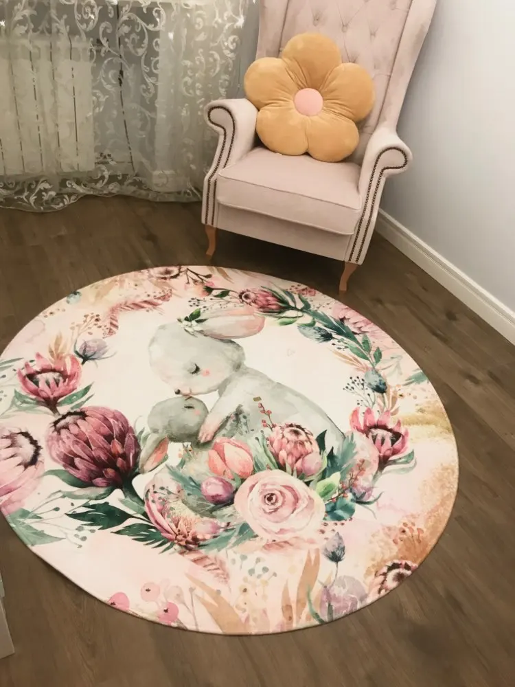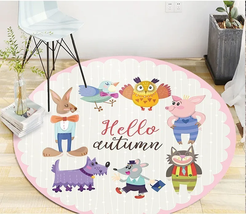 Круглый декоративный ковер для дома, 5 размеров, модные мультяшные рисунки, набивные круглые коврики для гостиной, спальни, нескользящий напольный коврик