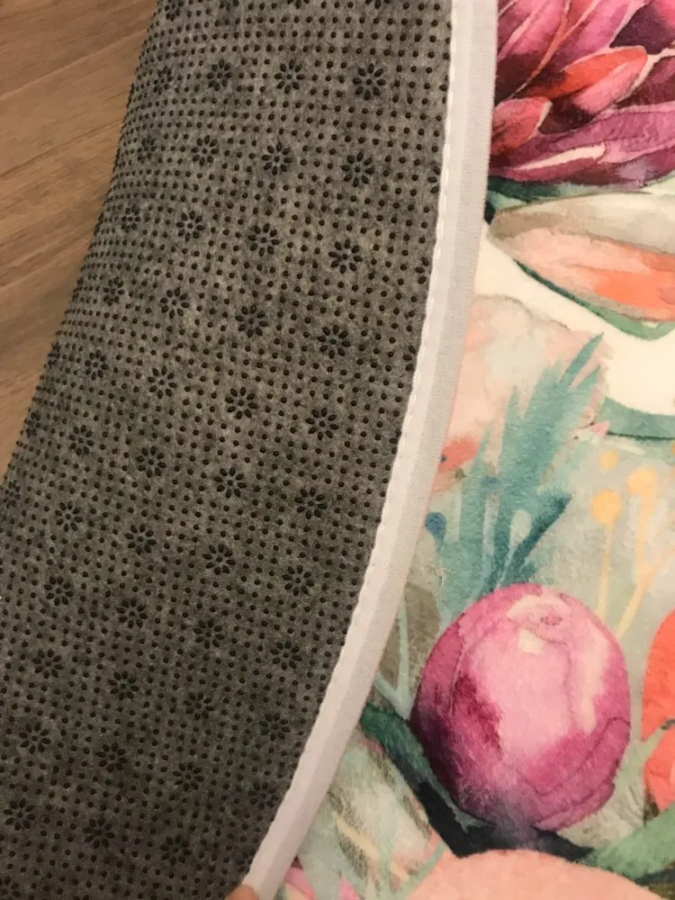 Коврик потрясающий. Мягкий, плотный, не скользит. Рисунок яркий, все как на фото. Присутствует лёгкий запах после распаковки, пару дней выветривался на балконе. Ну и приходит свернутый, нужно время, что бы распрямился. В остальном он крутой