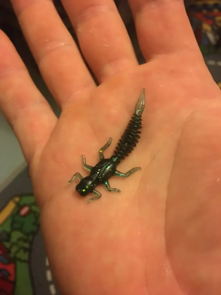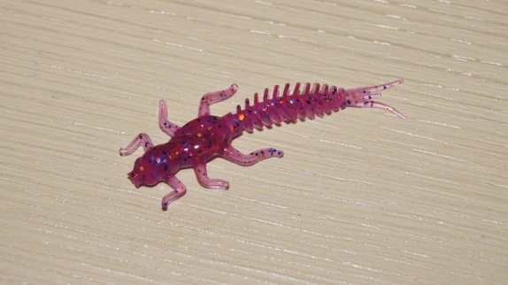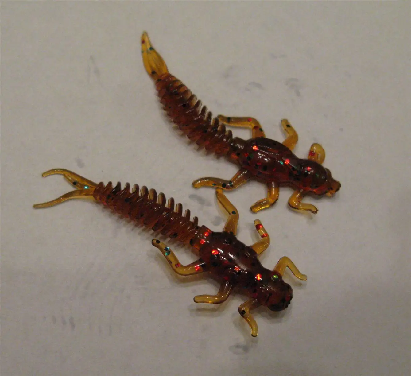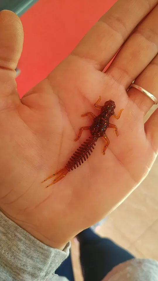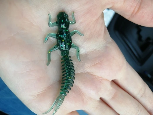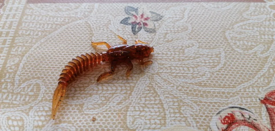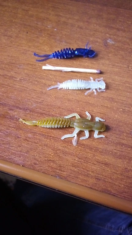 Замечательные насекомые. Очень мягкий силикон. В каком-то атрактанте, но запах не чёткий. Но у меня заложен нос и может быть я не чувствую, но аналогичный Лаки Джон с анисом прекрасно пробивает. Это можно перепропитать в конце концов. Жаль не смогу в этом году проверить на воде, хотя может и получится. Тогда дополню.