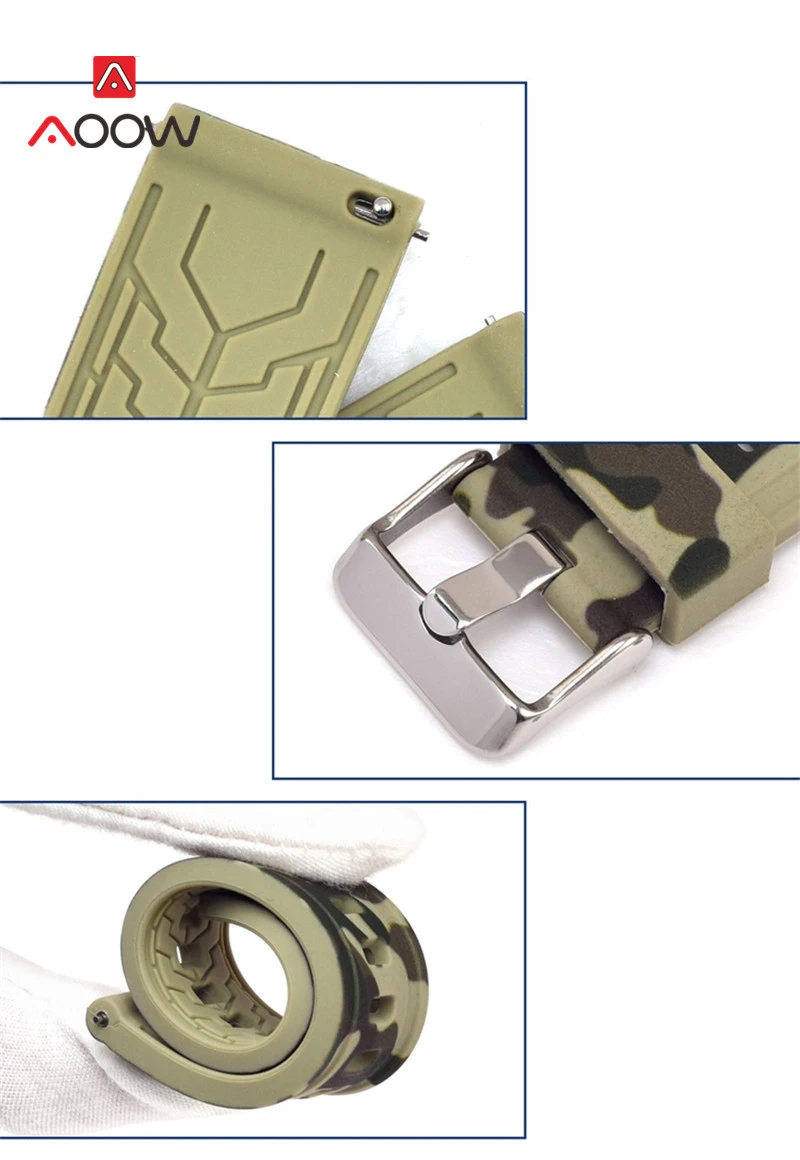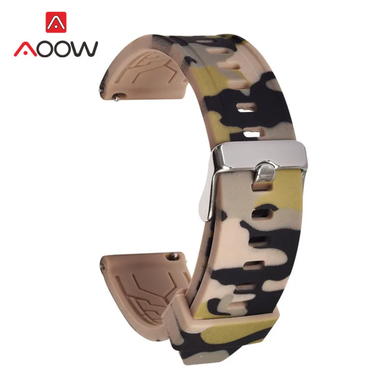 Ремешок Камуфляжный силиконовый для Samsung Galaxy Watch Gear S2 S3, быстросъемный резиновый спортивный браслет для часов, 18 мм 20 мм 22 мм 24 мм