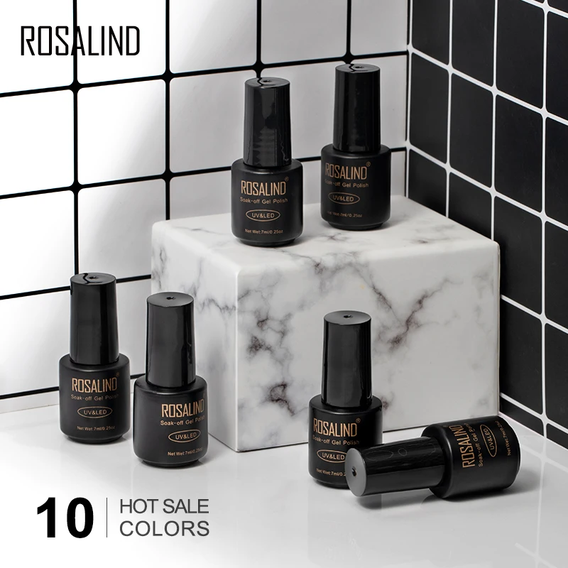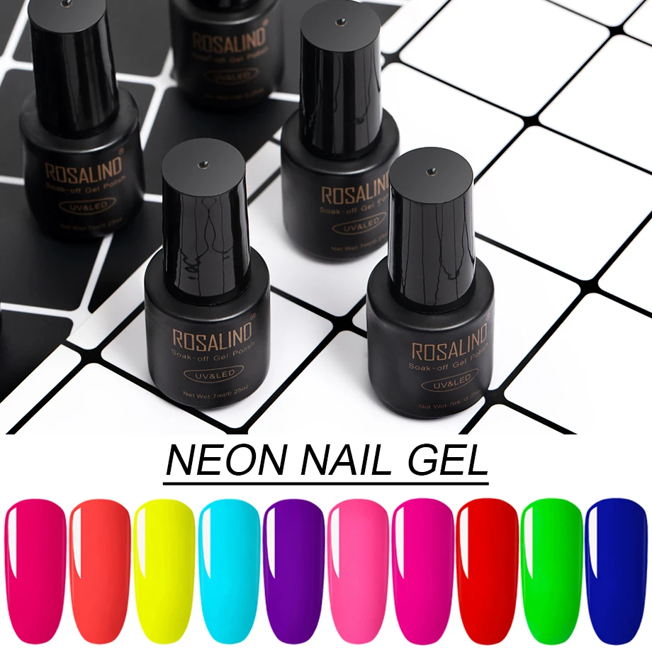 Неоновый УФ-Гель-лак ROSALIND для ногтей, набор для маникюра, 7 мл Гибридный лак для ногтей полуперманентный Гель-лак, отмачиваемый Праймер, базовое и верхнее покрытие