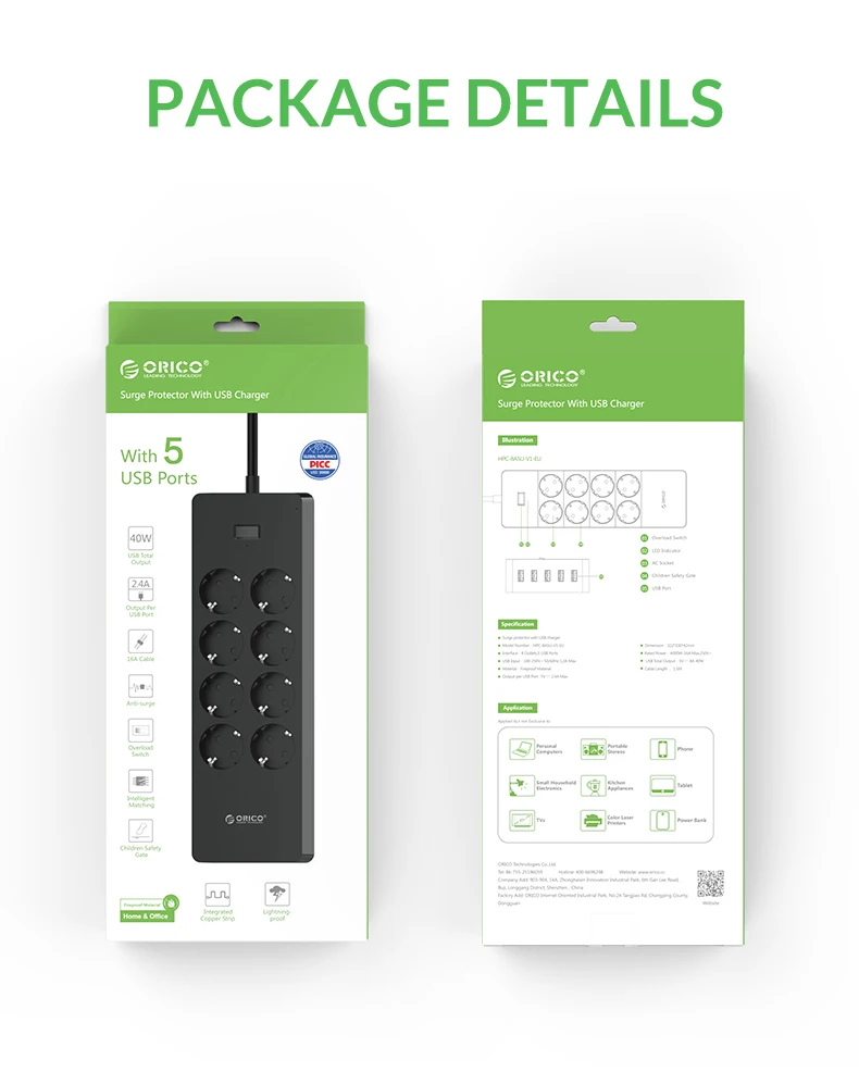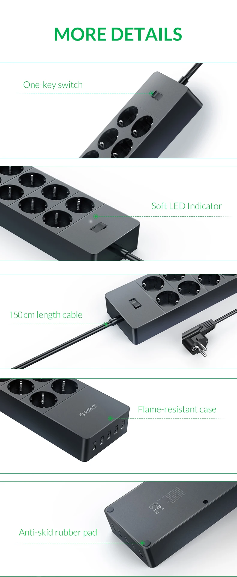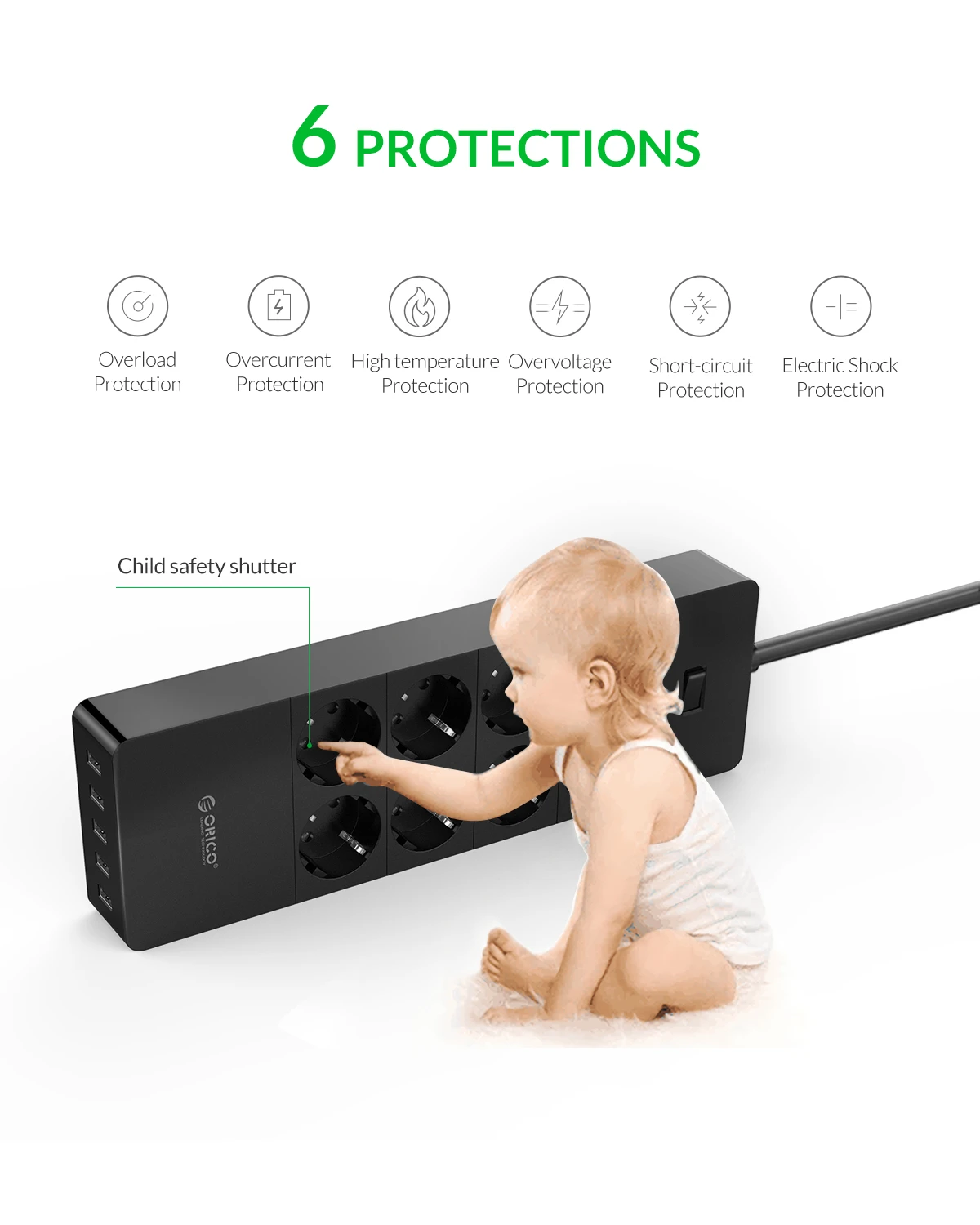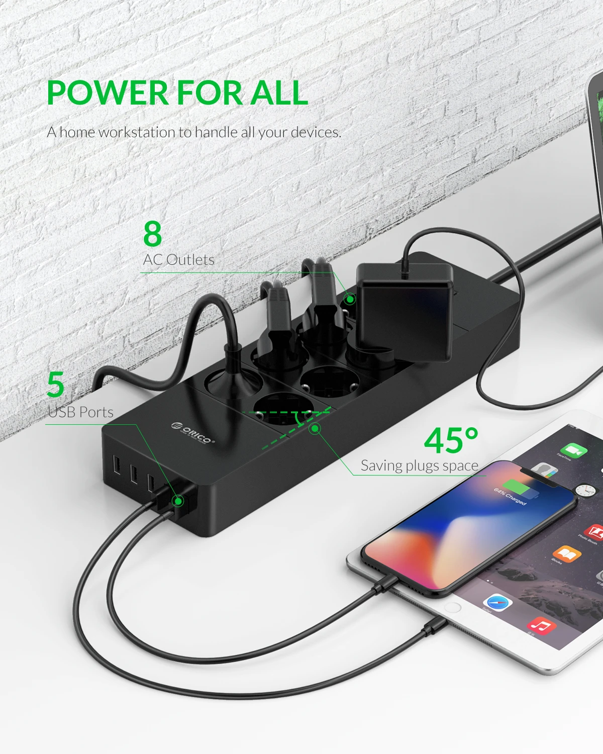 Электрическая лента ORICO с удлинительным кабелем, электрические розетки с usb-портами для домашнего офиса, защита от перенапряжения, умный сетевой фильтр