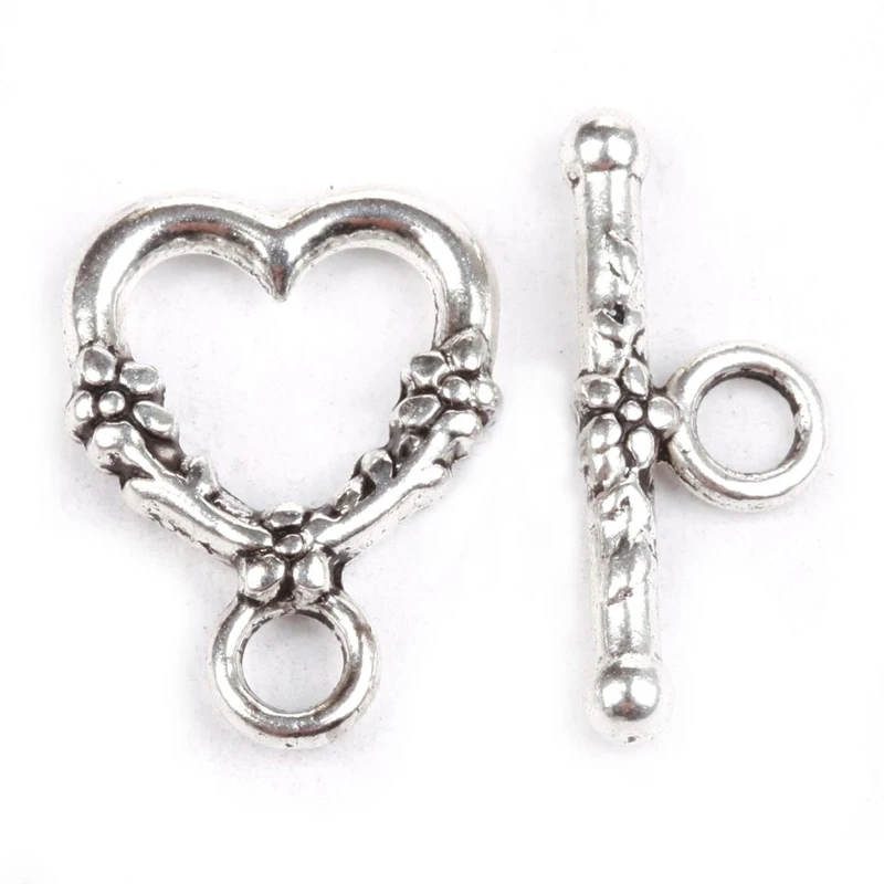 Оптовая продажа, элегантные застежки в форме сердца для изготовления ювелирных изделий, металлические переключение застежки выводы сделай сам для женщин, браслетов, ожерелий, крючков