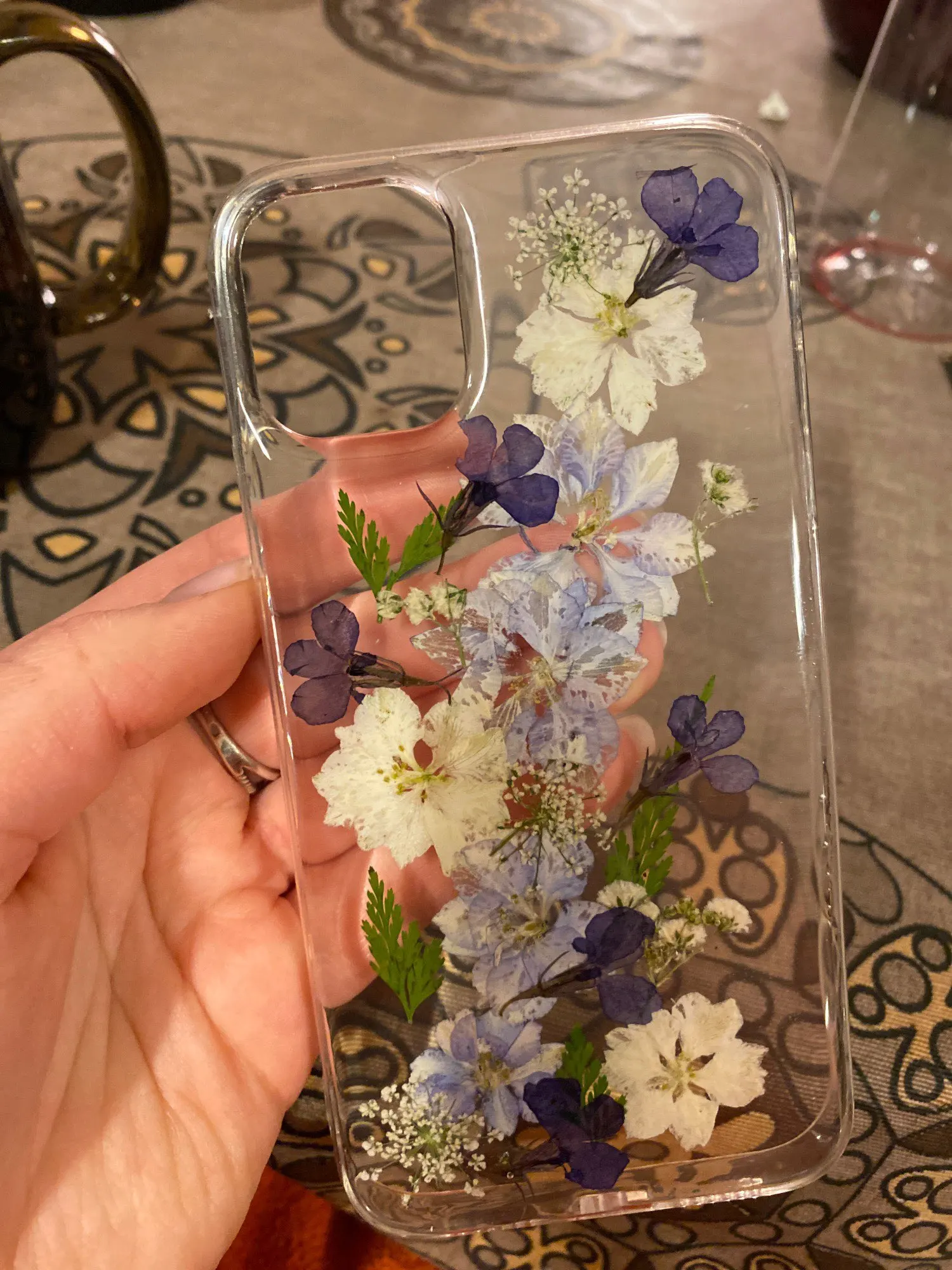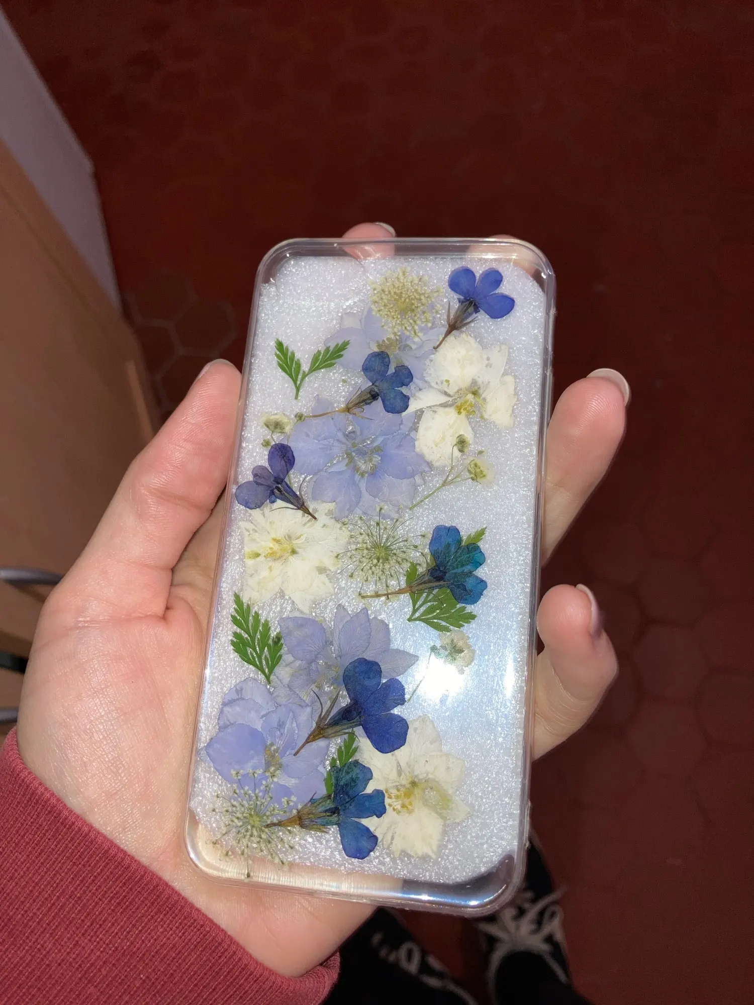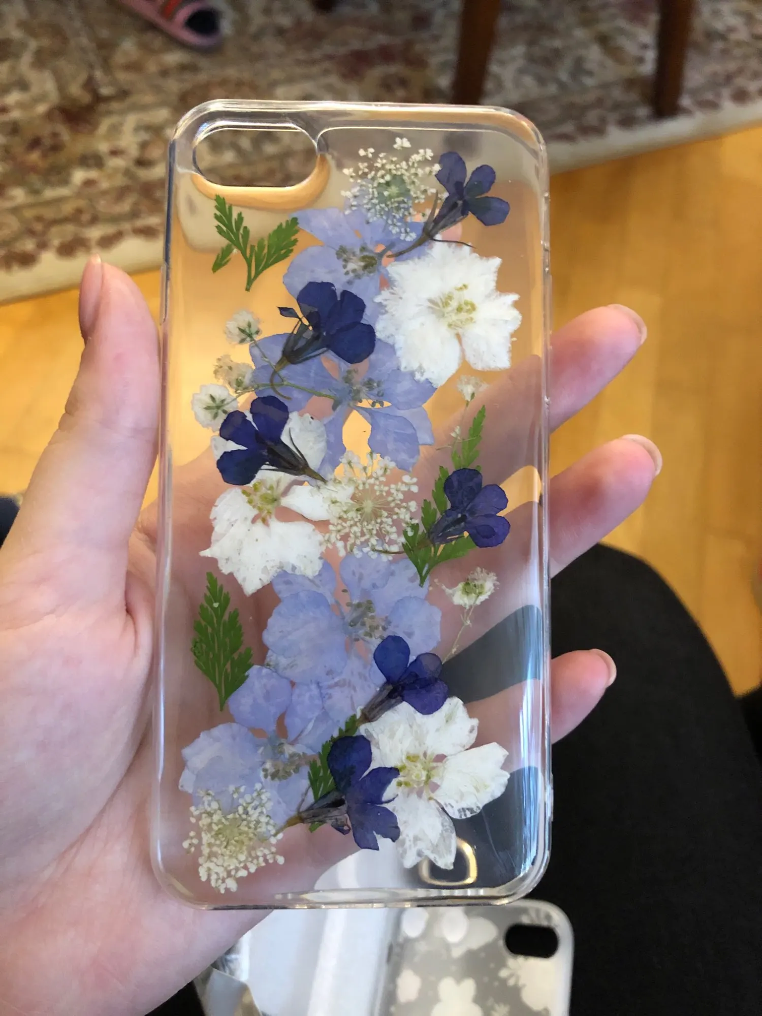 Очень крутой чехол. Цветы настоящие. Смотрится чудесно!