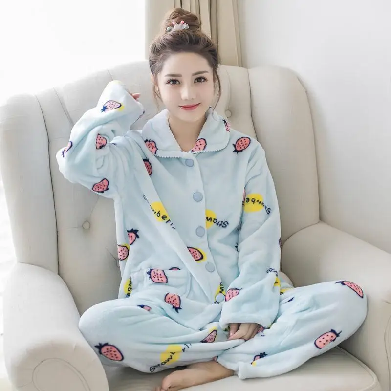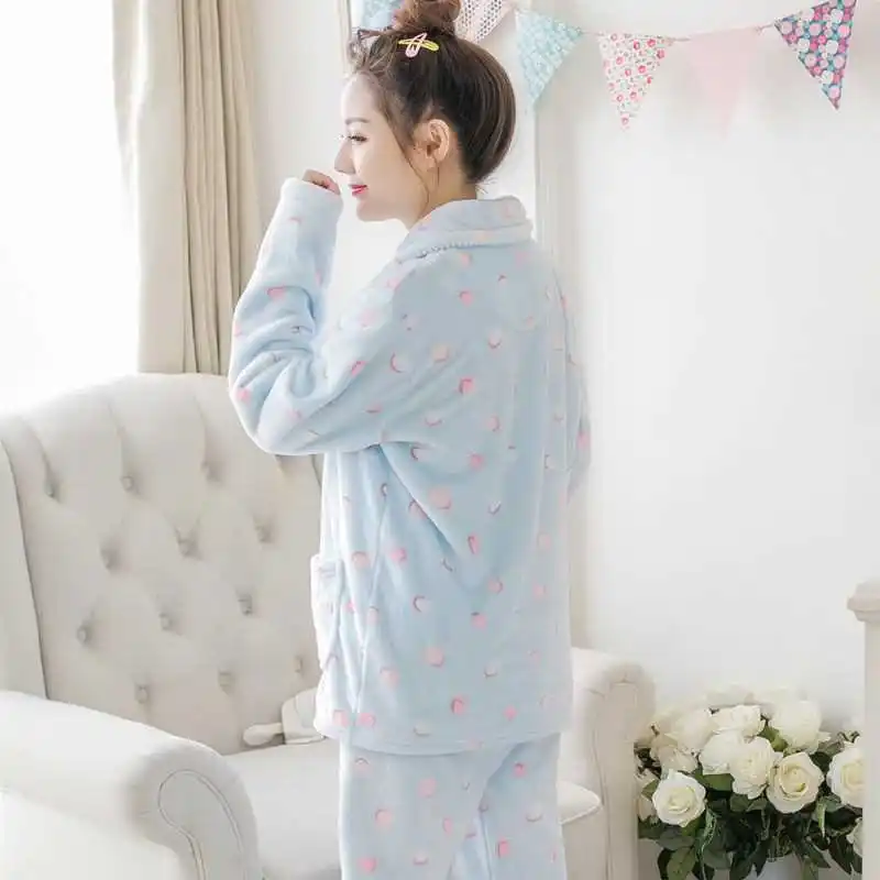 Зимние пижамные комплекты для женщин из двух предметов, фланелевый толстый теплый топ и штаны, пижамные комплекты, милые животные, кавайные пижамы, одежда для сна, Пижамный костюм