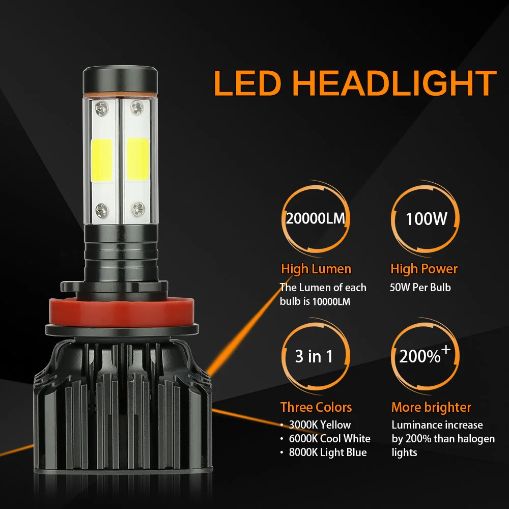 Zdatt H11 led лампы для авто головной светильник H1 HB3 HB4 H8 H4 H7 светодиодные лампы Canbus 20000LM 100 Вт высокой мощности Мощность автомобильный светильник лампа 3000K 6000K 8000K 12V для автомобильных фар