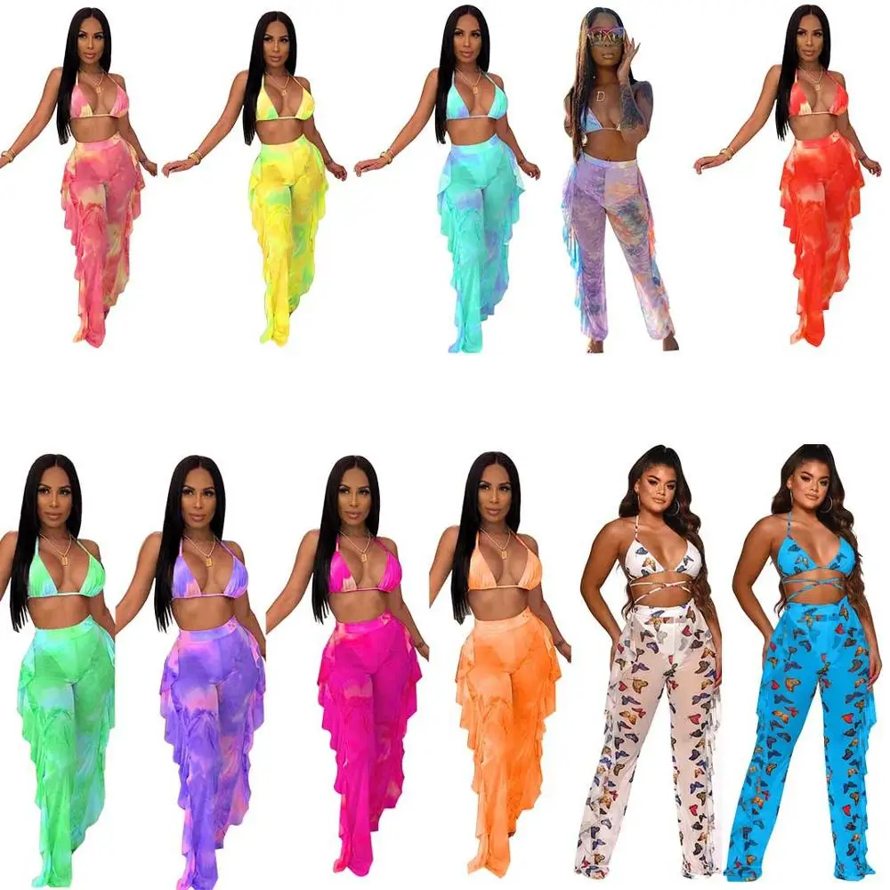Женский костюм из двух предметов с принтом, топ с V-образным вырезом и оборками