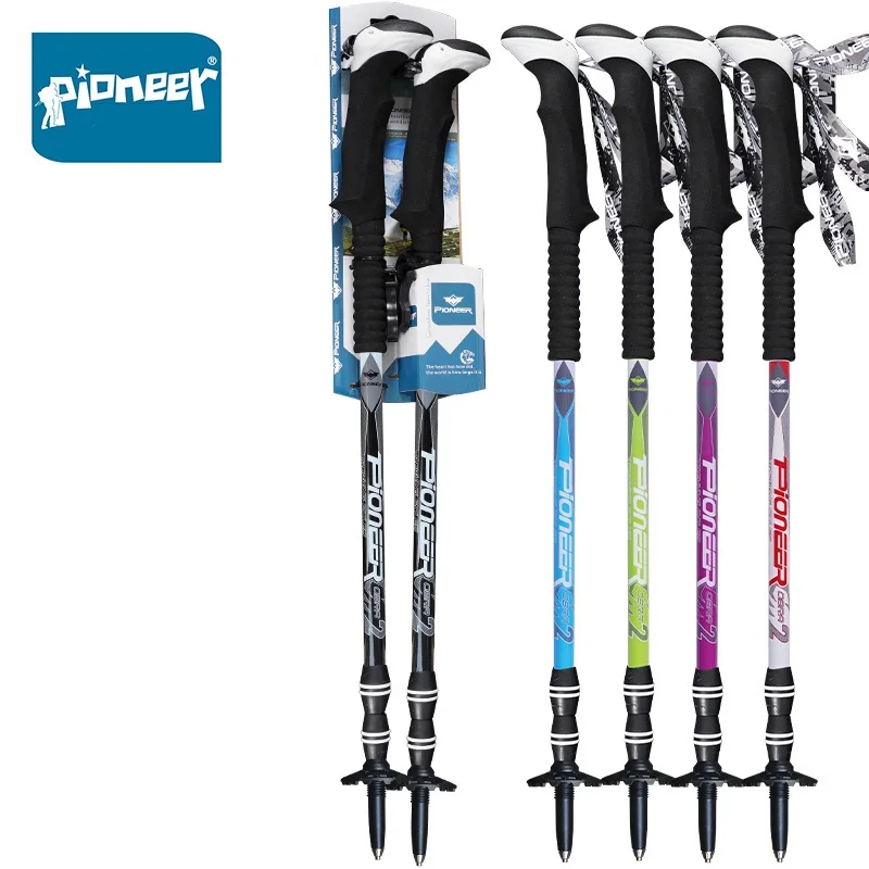 Pioneer 2 шт. телескопические трости из углеродного волокна, противоударные треккинговые палки, регулируемые сверхлегкие трости, 3 секции