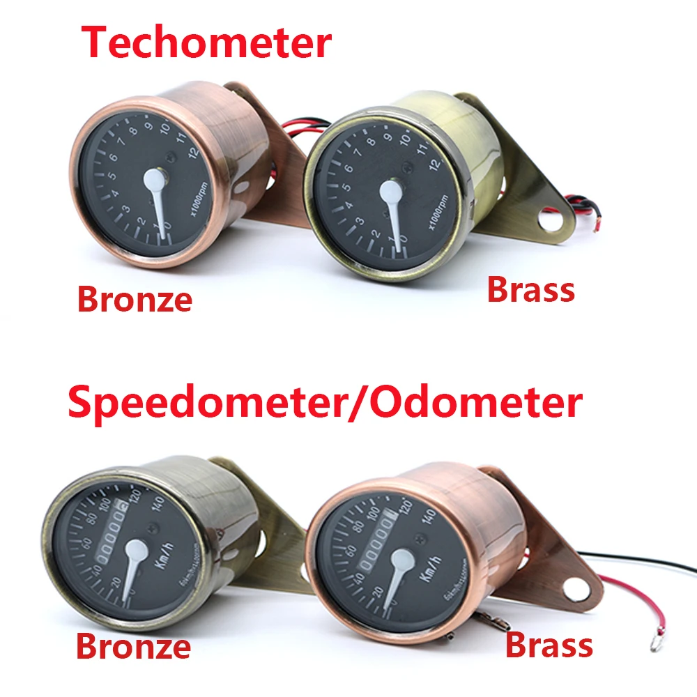 Светодиодный Бронзовый одометр для мотоцикла с подсветкой км/ч Спидометр Ретро Тахометр для универсального мотоцикла