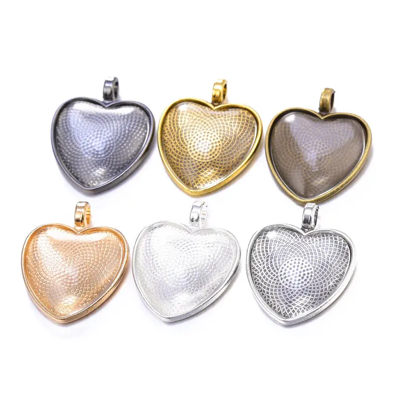 10 шт. Сердце Кабошон Настройки посеребренные Подвески ободок лотки база подходит 25 мм стекло DIY ожерелье аксессуары для изготовления ювелирных изделий Аксессуары