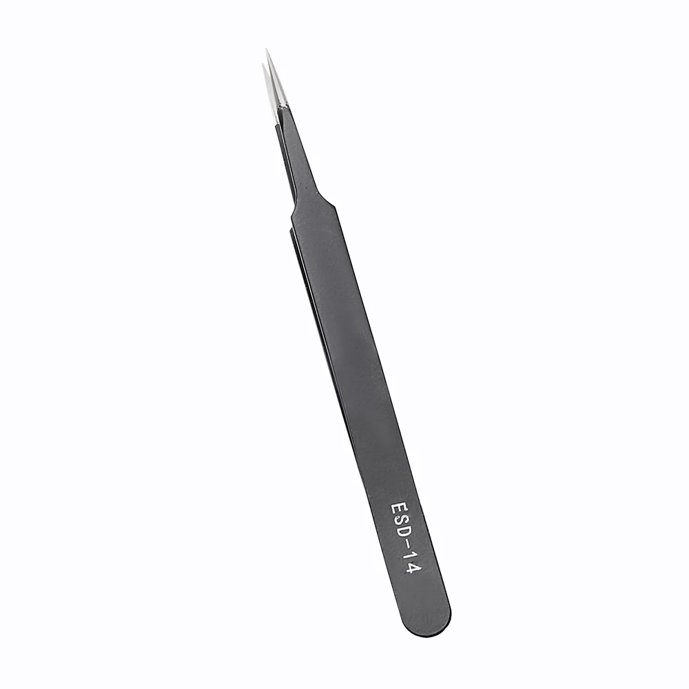 Материал: нержавеющая сталь ESD-14: Этот Пинцет особенно острый и острый, подходит для компонентов интегральной схемы высокой плотности. ESD-15:Данный Пинцет Согнут на 45 градусов, подходит для снятия деталей в узких местах.Посылка