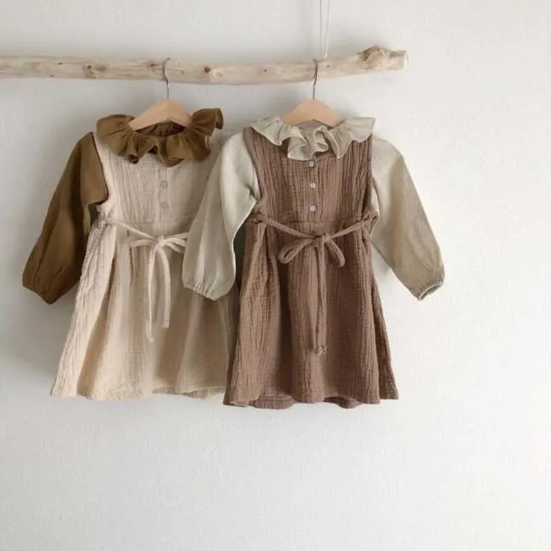 Платья для маленьких девочек 2020 г. Платья в корейском и японском стиле платье для маленьких девочек льняная одежда принцессы для девочек, повседневное модное платье