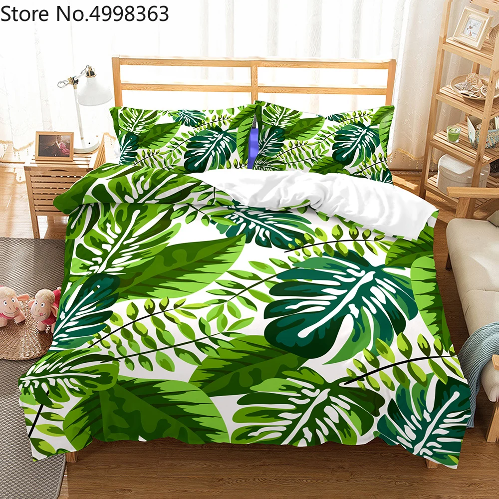Пододеяльник с 3D принтом, Комплект постельного белья с тропическими растениями, зеленый комплект постельного белья с наволочкой, реалистичное постельное белье для близнецов, полный комплект постельного белья
