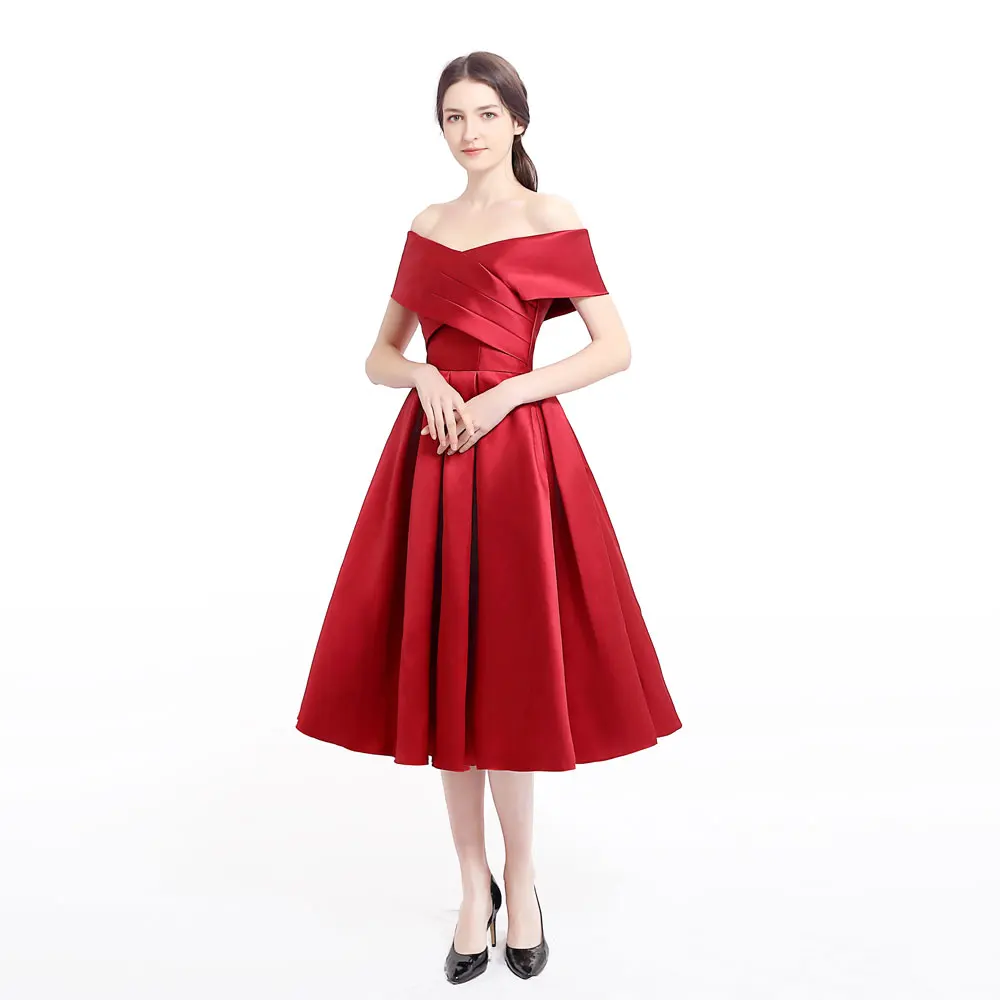 Женское атласное вечернее платье, со складками, большого размера, для выпускного вечера, платье с горловиной лодочка