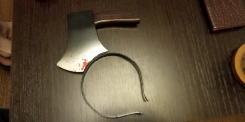 Страшная одежда, головной ремень, топор, ножницы, повязка на голову...