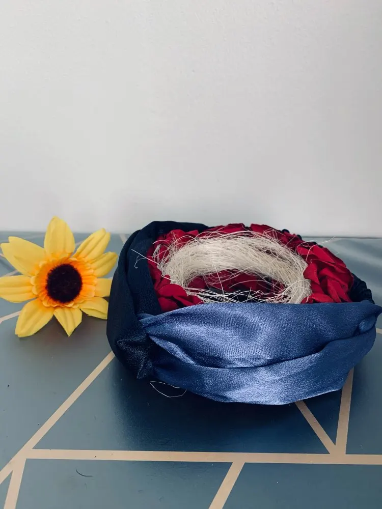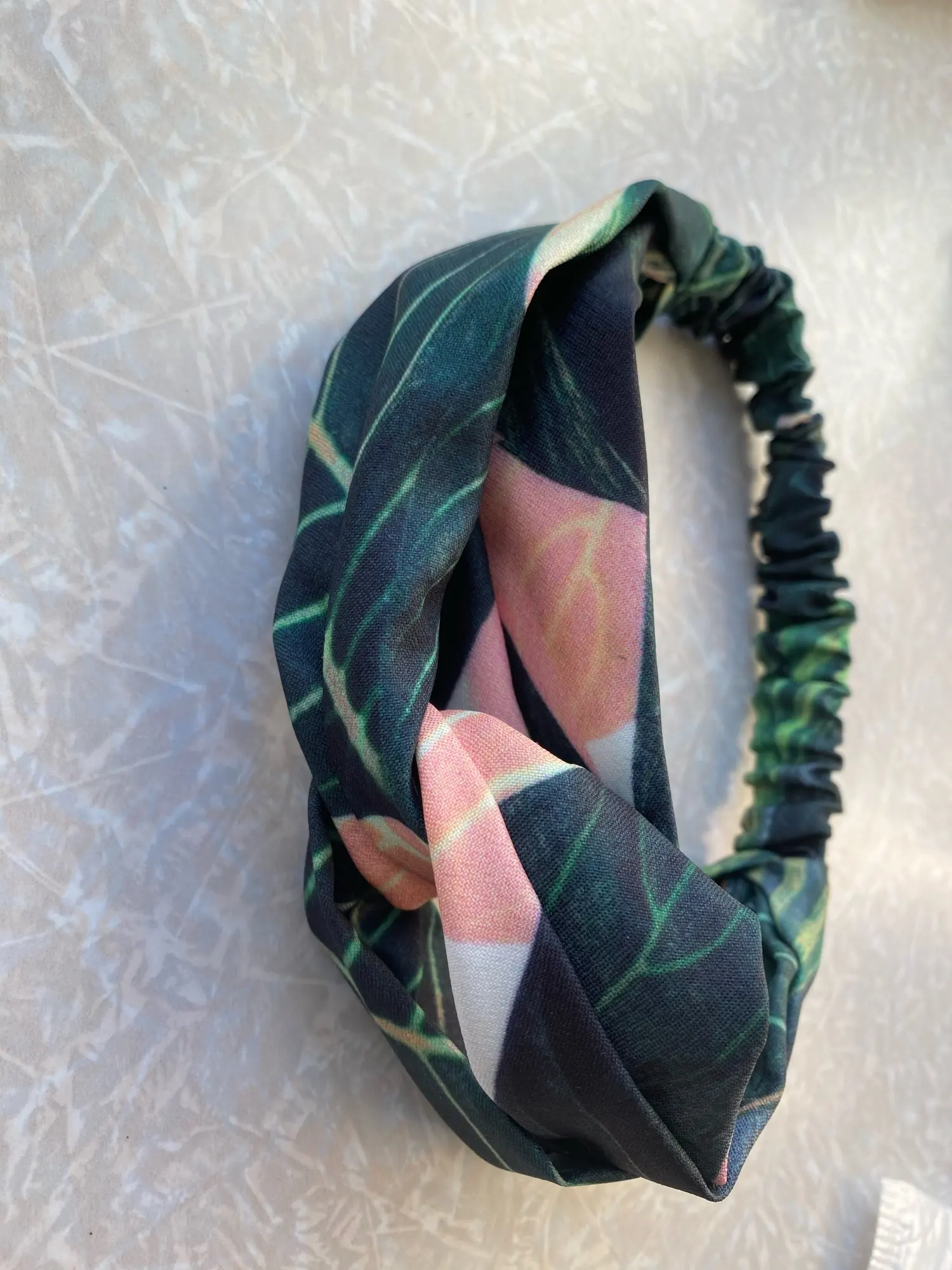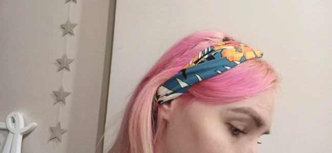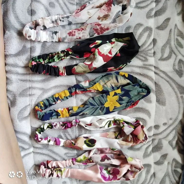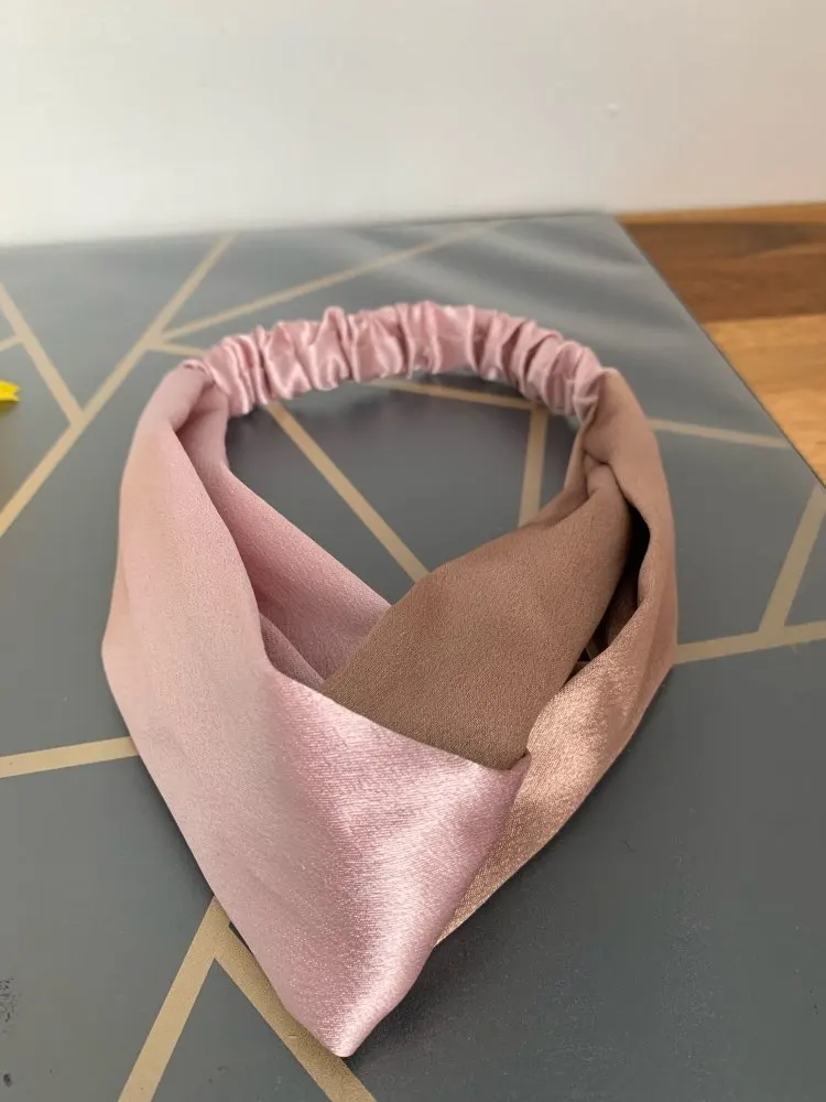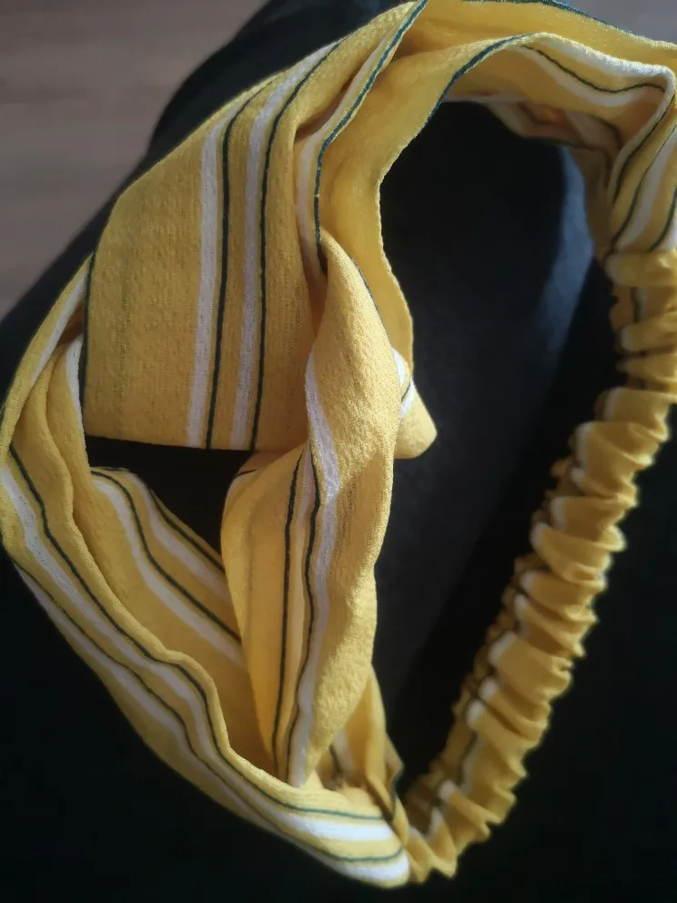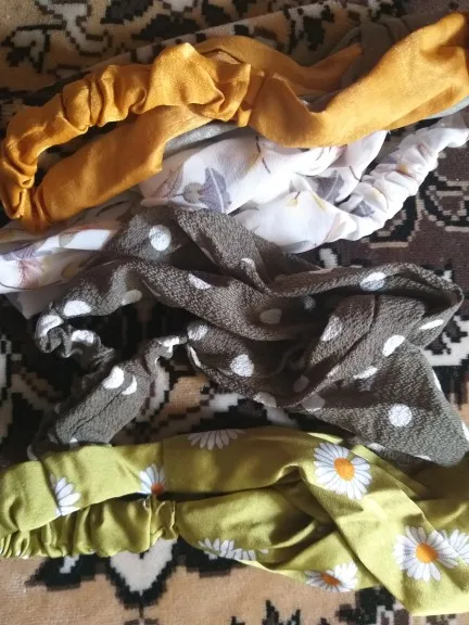 Заказывала две повязки. Материал у светлой более плотный, у темной ткань прозрачная и более лёгкая. Сидят удобно, смотрятся красиво