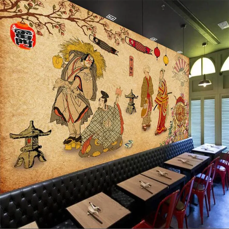 Пользовательские Ukiyoe Самурайские обои японская кухня суши Ресторан Izakaya промышленный Декор настенная бумага Papel де Parede 3D